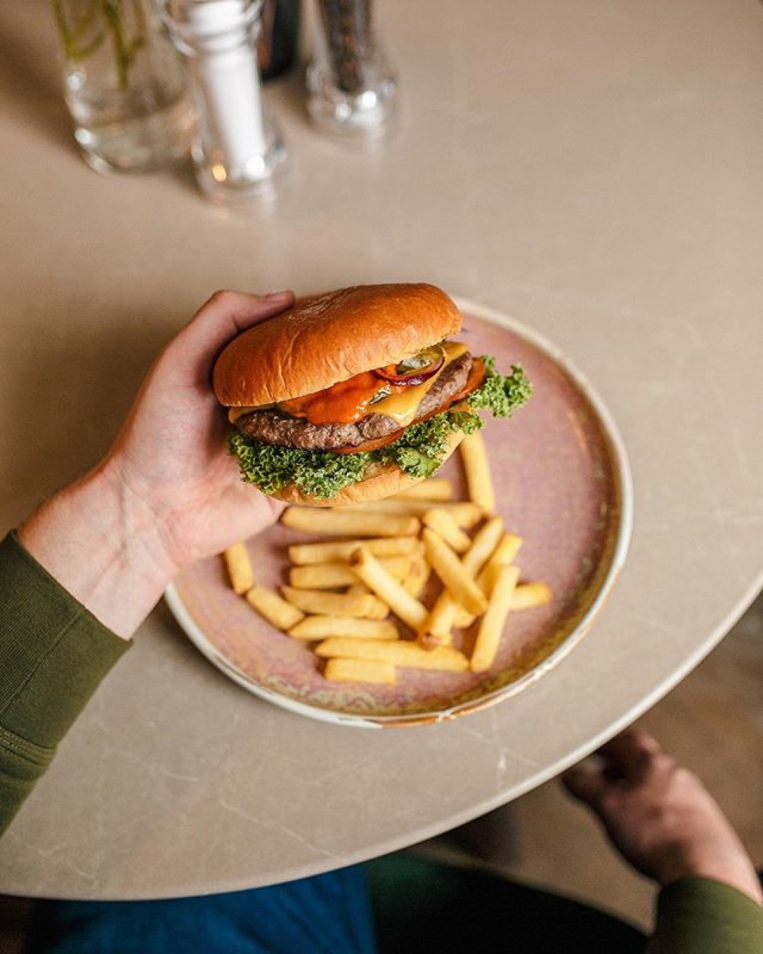 Выбирать здесь тот-самый-бургер придется из десяти видов. Изучив ингредиенты, мы заметили некую закономерность и решили облегчить вам задачу. Начнем с котлеты: тут есть куриная и говяжья. А начинки для бургера могут быть следующие: жареный бекон, перец халапеньо, салат айсберг, карамелизированный лук, маринованные огурцы, сыр, соус «Бессер». Дальше все просто: выбираете ингредиенты по вкусу, находите в меню и заказываете.