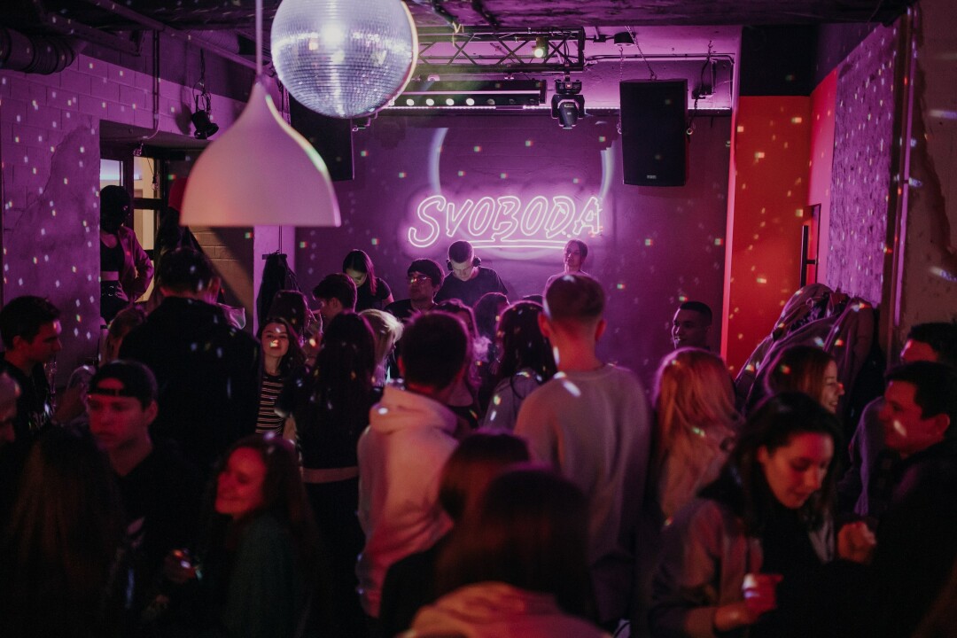 Небольшой и очень ламповый бар для молодежи манит громкой музыкой, ультрафиолетовыми огоньками и вывеской «Пришел. Увидел. Накатил» (звучит, в целом, как план на корпоратив). Прийти сюда можно компанией до тридцати человек: поместятся и hr-отдел, и бухгалтерия. Условия аренды такие: заведение полностью закрывается под мероприятие, приглашается диджей на два часа. Меню по классике: закуска, пицца, бургеры. В барной карте – напитки на любой вкус. Хотите пригласить ведущего? Без проблем: в «Свободе» поддержат любое веселье.