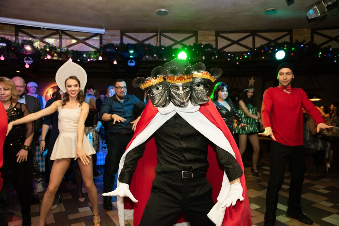 На сайте ресторана написано, что здесь властвуют beer, meat, dance – что ж, звучит как описание идеального корпоратива. В этом году праздниками заправляют ведущий Илья Подольский, музыкальная группа «Другие», Дед Мороз и Снегурочка. Меню европейское, с упором на мясо: стейки на гриле, фирменные бургеры, разнообразные закуски. Средний чек – от 3500 рублей на персону.
