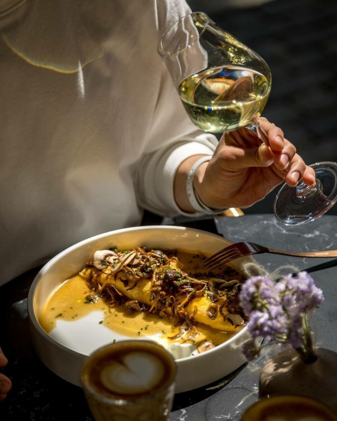 Место для gorgeous girls! Это отличная локация для неспешного завтрака с подругами, чтобы попробовать «Сэндвич Монтекристо» или «Оладушки как у бабушки» (так называются позиции в меню). Или провести вечер — здесь много блюд с мясом, рыбой и для веганов, а еще большая барная карта с легкими коктейлями и игристым.