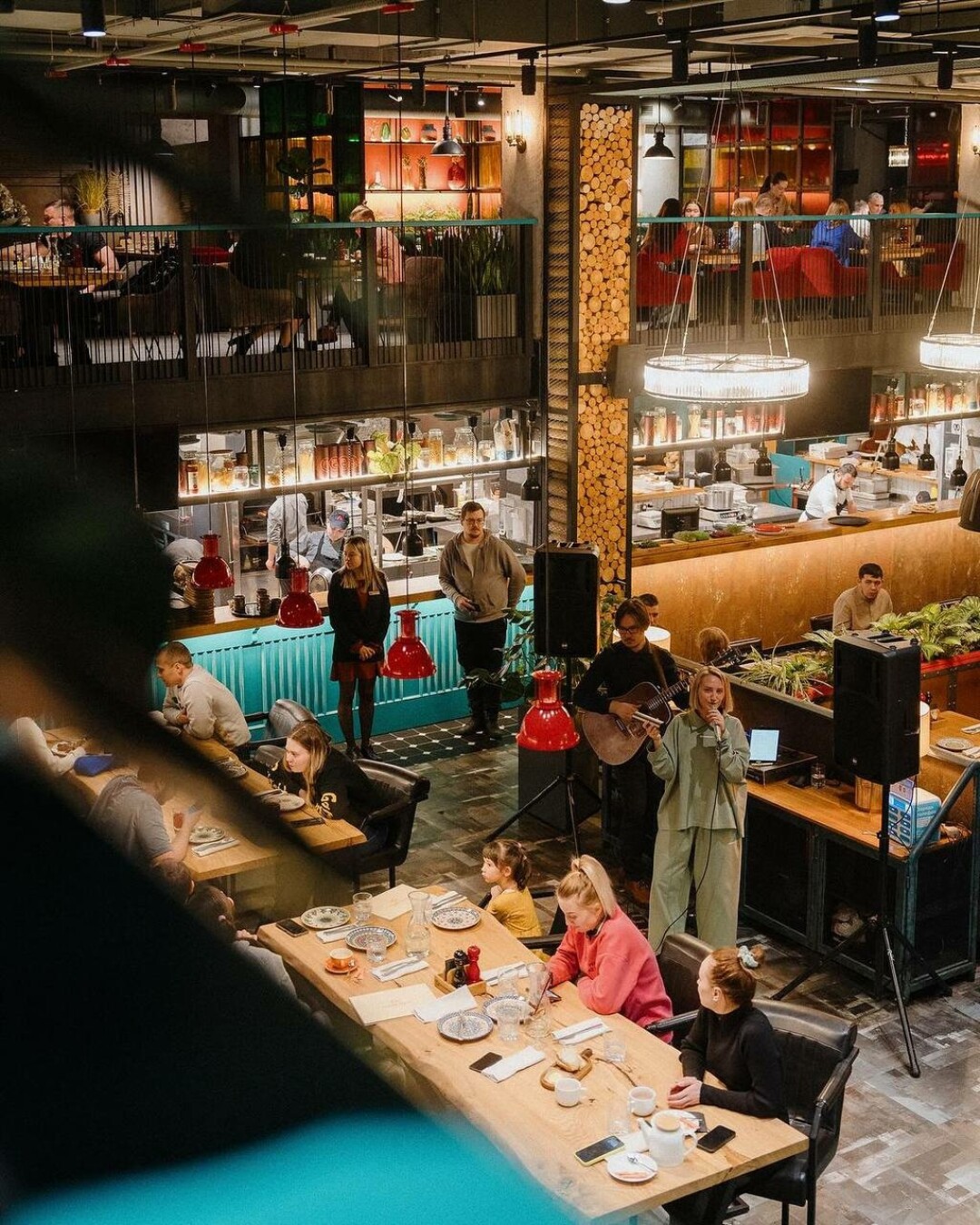 В меню лофт-пространства представлена большая коллекция закусок, морепродукты, роллы, бургеры, стейки и салаты. А если собираетесь большой компанией (подруг много не бывает!) — бронируйте одну из трех вип-комнат, чтобы точно никто не мешал. Здесь можно не только поужинать, но и сделать пару снимков для соцсетей — например, на фоне местных арт-объектов.
