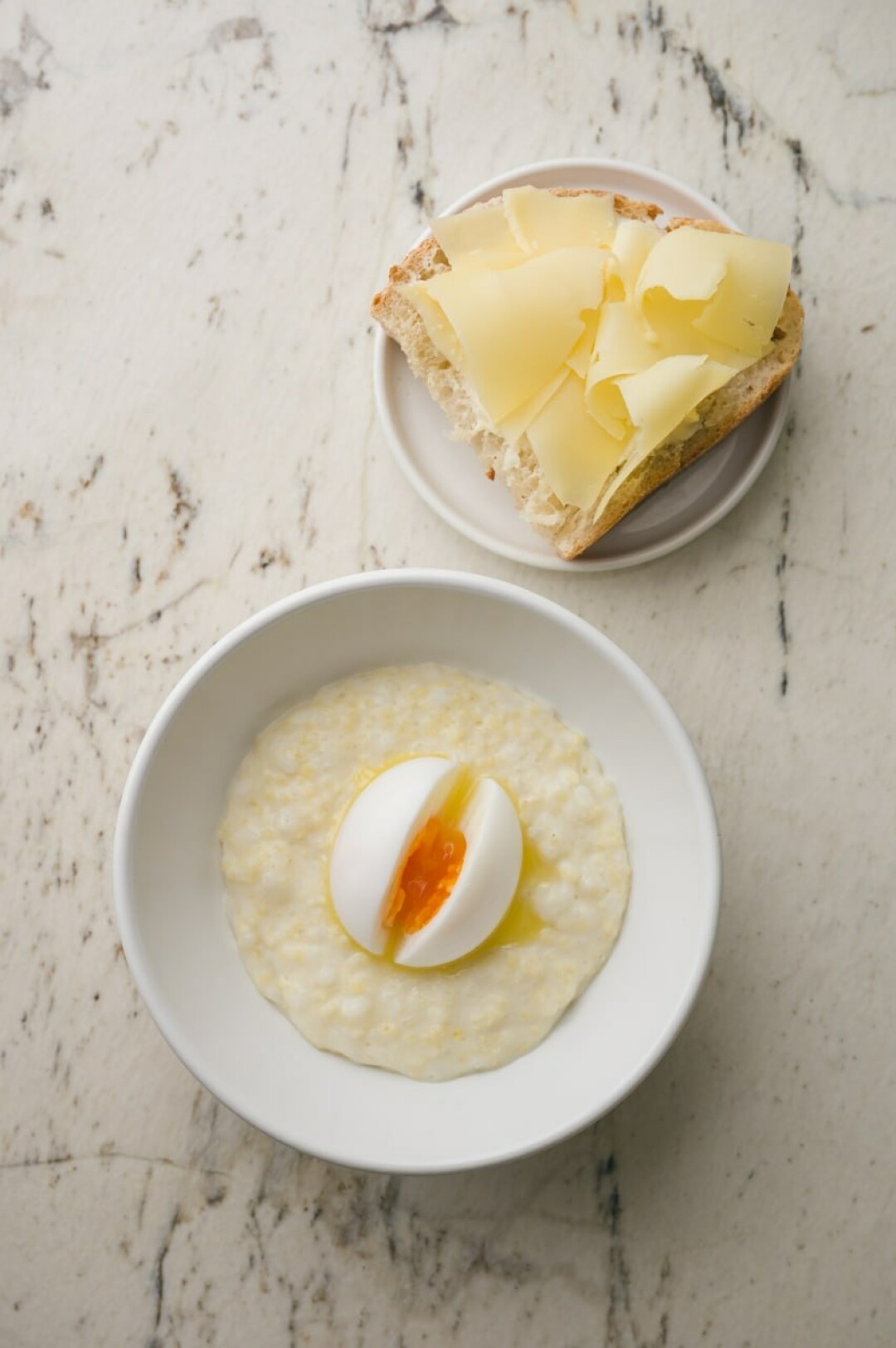 Меню завтраков действует с 08:00 до 13:00 по будням, с 09:00 по субботам и с 10:00 — по воскресеньям. Для бодрого утра на выбор гречка с фаршем, рисовая каша с карамелизированной грушей и овсянка с ягодами и шоколадом. Любители считать калории оценят скрэмбл со шпинатом и муссом из васаби. А еще рекомендуем попробовать пончики из краба, глазунью с пепперони и томатами или красную шакшуку с баклажаном.
