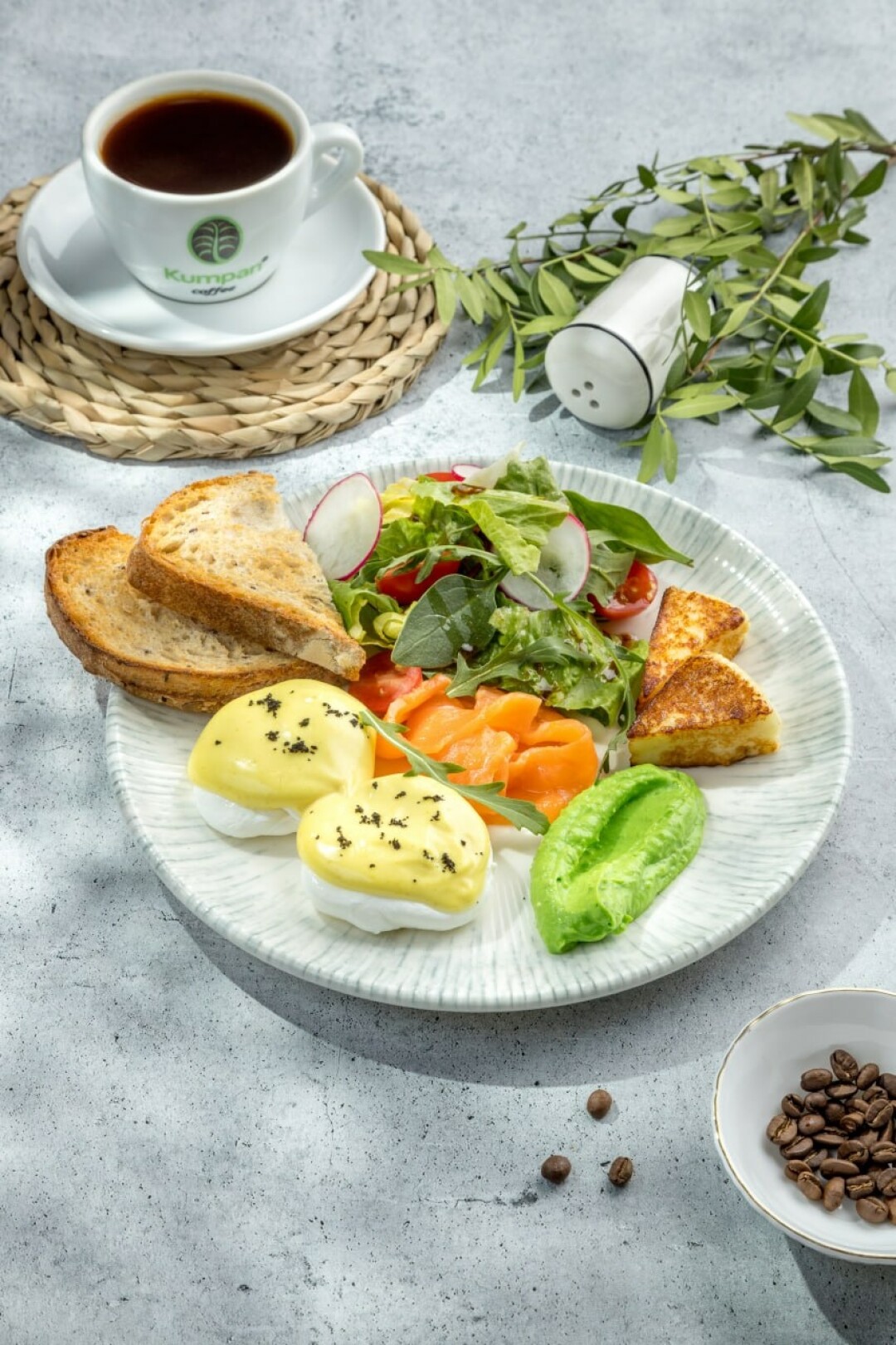В кофейне подают завтраки весь день с 08:00 по будням и с 10:00 в выходные. В меню шакшука с домашним сыром и перцем халапеньо, боул с лососем или тунцом, каши с ягодами, фруктами и шоколадом, вафли с сытными начинками и сладкими топпингами. При заказе завтрака до 12:00 в будние или до 16:00 в выходные дни кофе или чай в подарок.