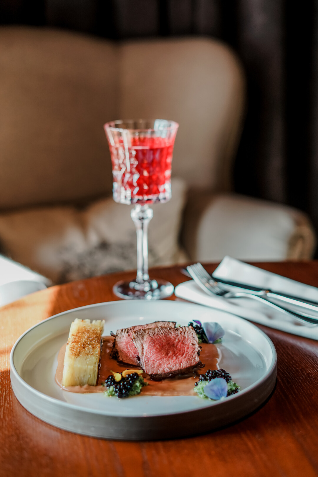 Пространство по мотивам дворянской усадьбы XIX века. Если бы нужно было описать ресторан одним словом, мы бы предложили слово «статус» и оказались бы правы. Здесь соединились гастрономические и дизайнерские тренды: например, шкаф для сухого вызревания мяса (так оно получается особенно нежным) стоит прямо в зале и гипнотизирует даже самых искушенных гостей.