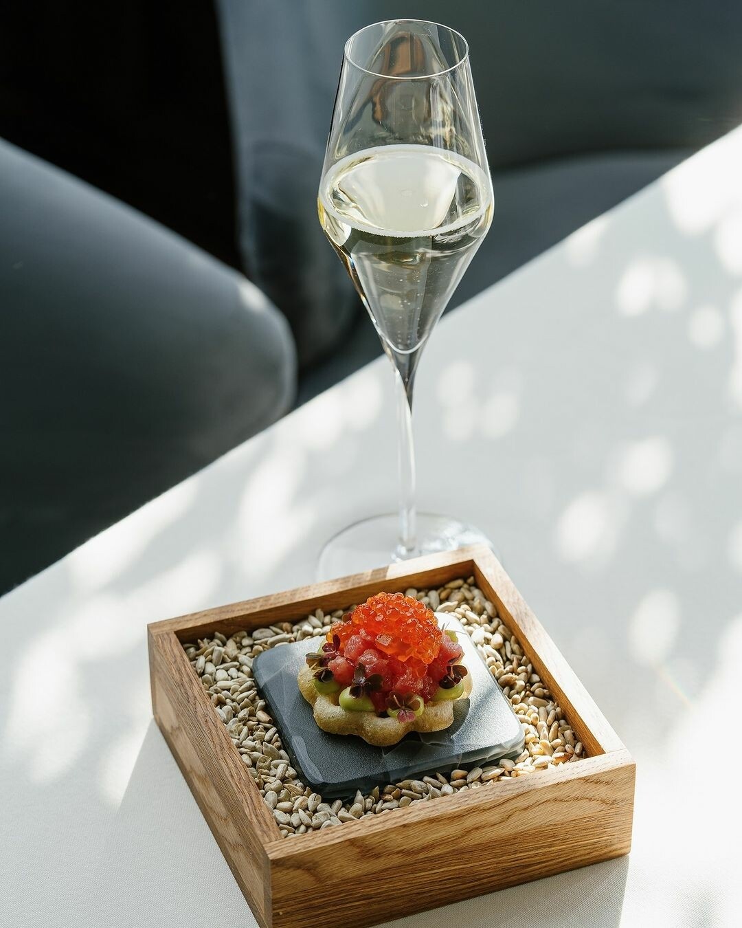 Ресторан Del Mare в Уфе известен как одно из первых рыбных заведений. Однако его привлекательность не ограничивается только морепродуктами. Среди особых достоинств — вероятно, самая обширная и впечатляющая винная карта. Здесь собрана огромная коллекция с 2009 года урожайности из стран Европы и Америки: Канада, Германия, Франция, Италия, Испания, Словакия и другие. Все они идеально вписываются в дуэт к блюдам из морских деликатесов, которые подают в Del Mare. Но что делает ресторан еще более особенным — его крутой сомелье Валерий Кожедуб. Он не просто помогает гостям разобраться в разнообразии сортов, ароматах и нотах вин, но и предлагает идеальные сочетания для каждого блюда, чтобы создать незабываемый гастрономический опыт.