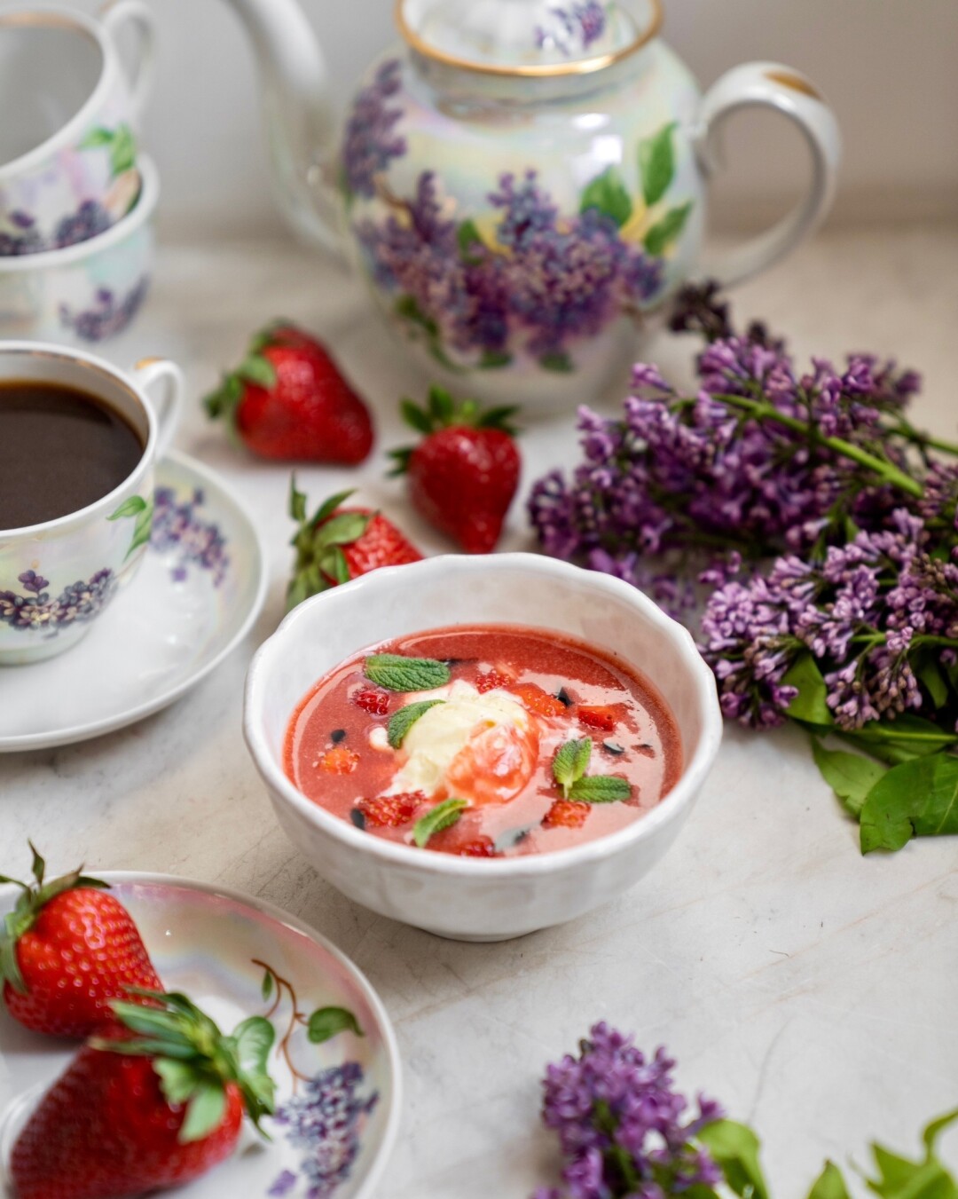 В ресторане обновили меню, среди новых позиций – домашний салат из овощей со сметаной, окрошка на квасе или на кефире, гаспачо со страчателлой. А еще здесь можно заказать десерты с сезонными ягодами, напаример, клубнично-земляничное гаспачо, чизкейк с клубникой, творожный пирог с брусникой, пирог с абрикосами.