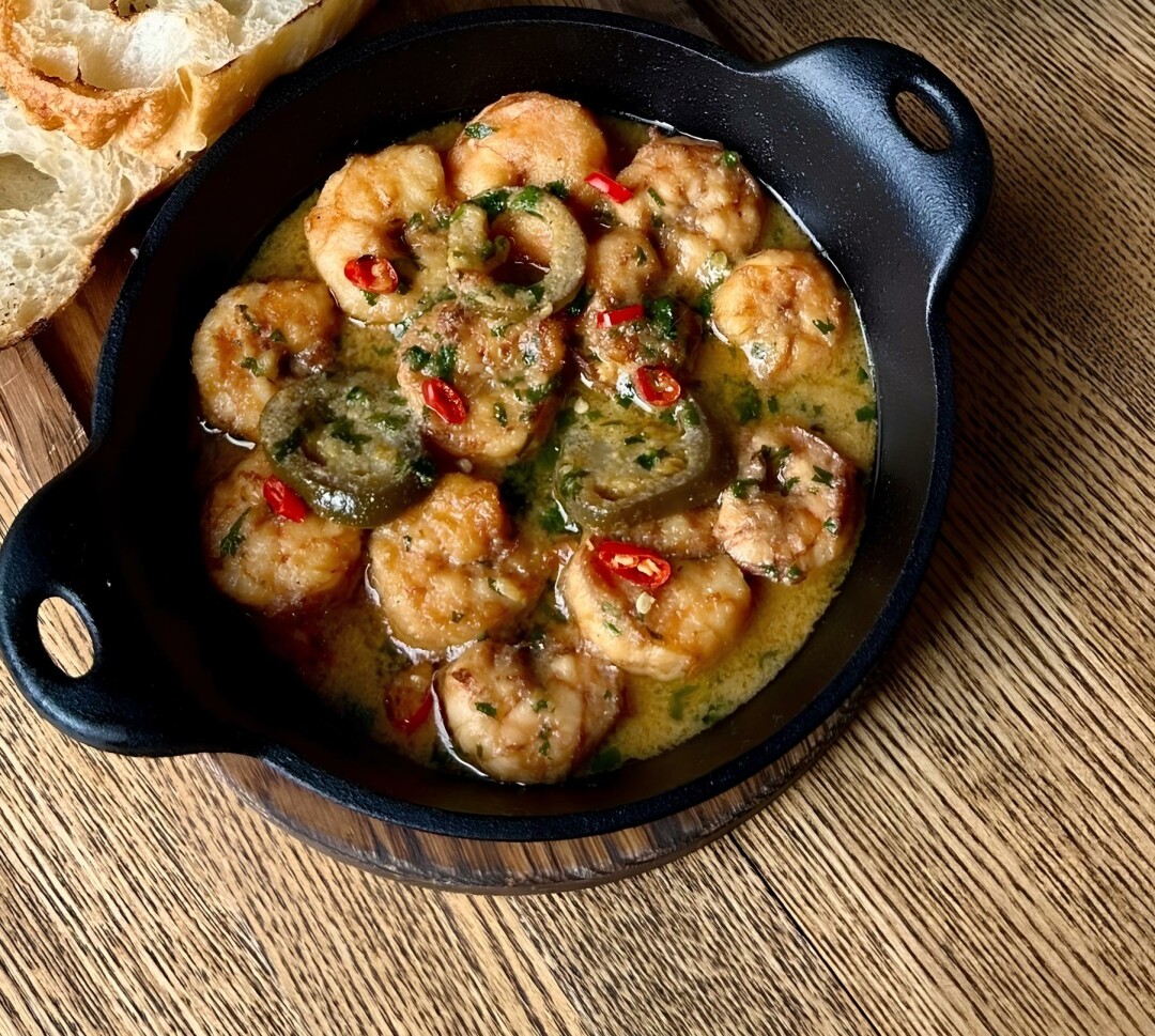 В этом месяце в меню мексиканского бара две новинки: жареные креветки в пряном бульоне и тар-тар с тунцом. Первый подают с ремесленным хлебом и рыбным бульоном, второй – с соусом песто из крапивы.