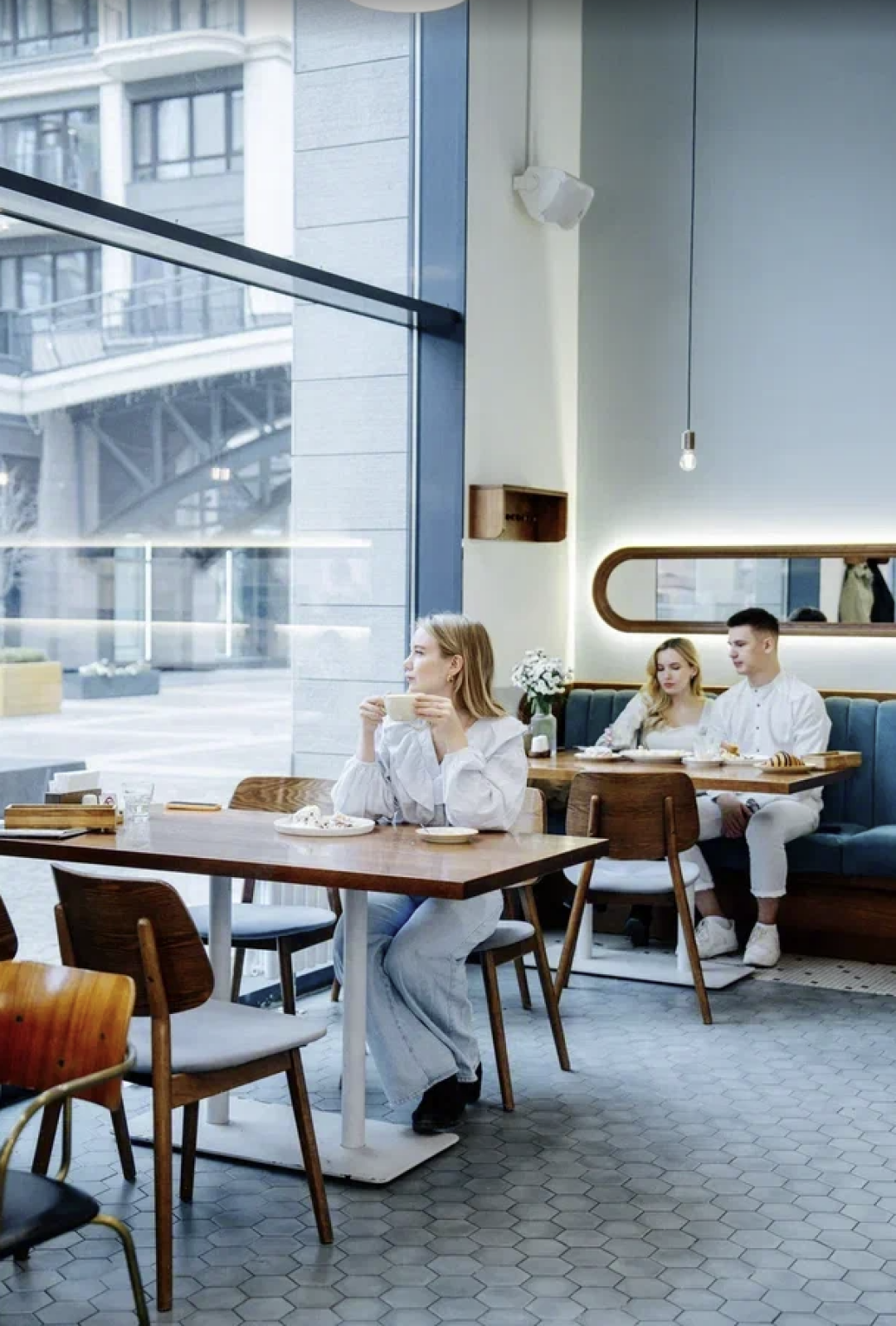 Но не напитками едиными славится это место. Меню завтраков полнится глазуньями, омлетами, шакшукой. Сюда же добавляем разнообразные каши и семь видов сэндвичей. На обед идем в «Центральную кофейню», чтобы поесть салат с киноа, авокадо и снежным крабом. Обязательно пробуем горячий чечевичный супчик и пасту с говядиной и фасолью, драники со сметаной или кесадилью с курицей и кукурузой. Сытые и довольные, можем дальше отправляться по делам.