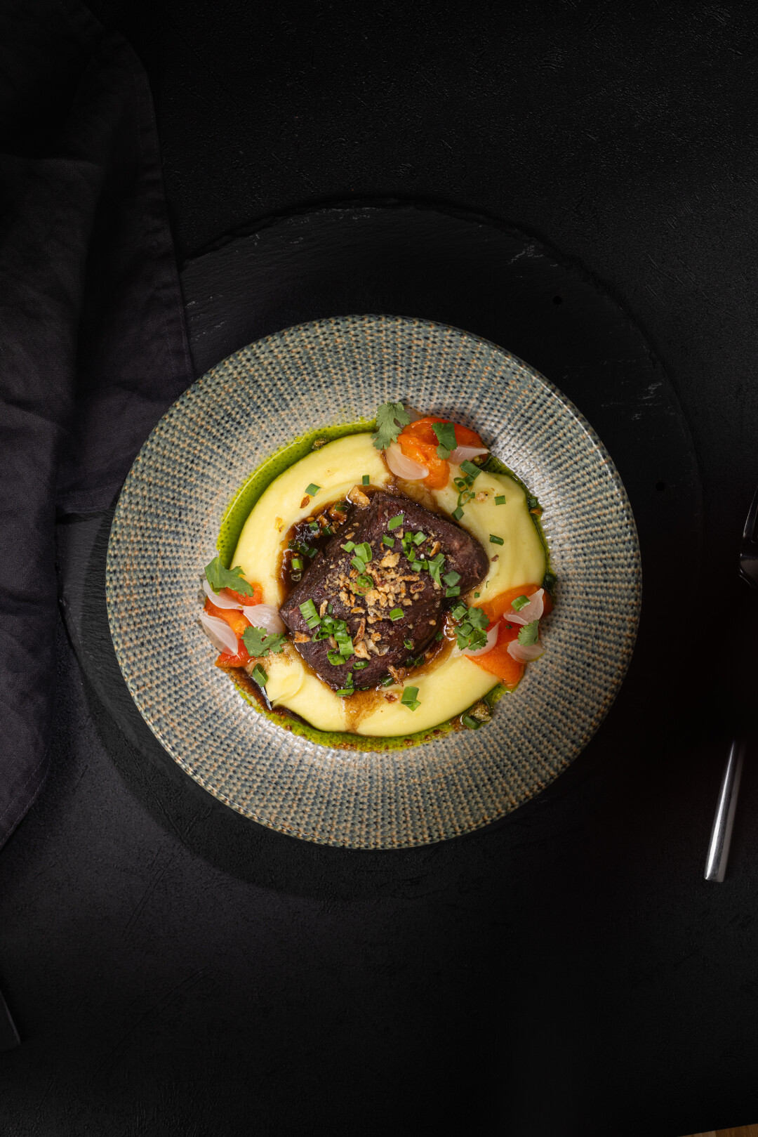 Шеф-повар ресторана Марсель Рамазанов разработал сет из пяти блюд. 12 декабря на гастроужине гости попробуют тартар из гребешка с клубникой, салат с куриной печенью и манго, черный халуми с печеным перцем, морского окуня с чечевицей Белуга и лаймовым желе, говяжьи ребра кальби с гратеном и перечным соусом.