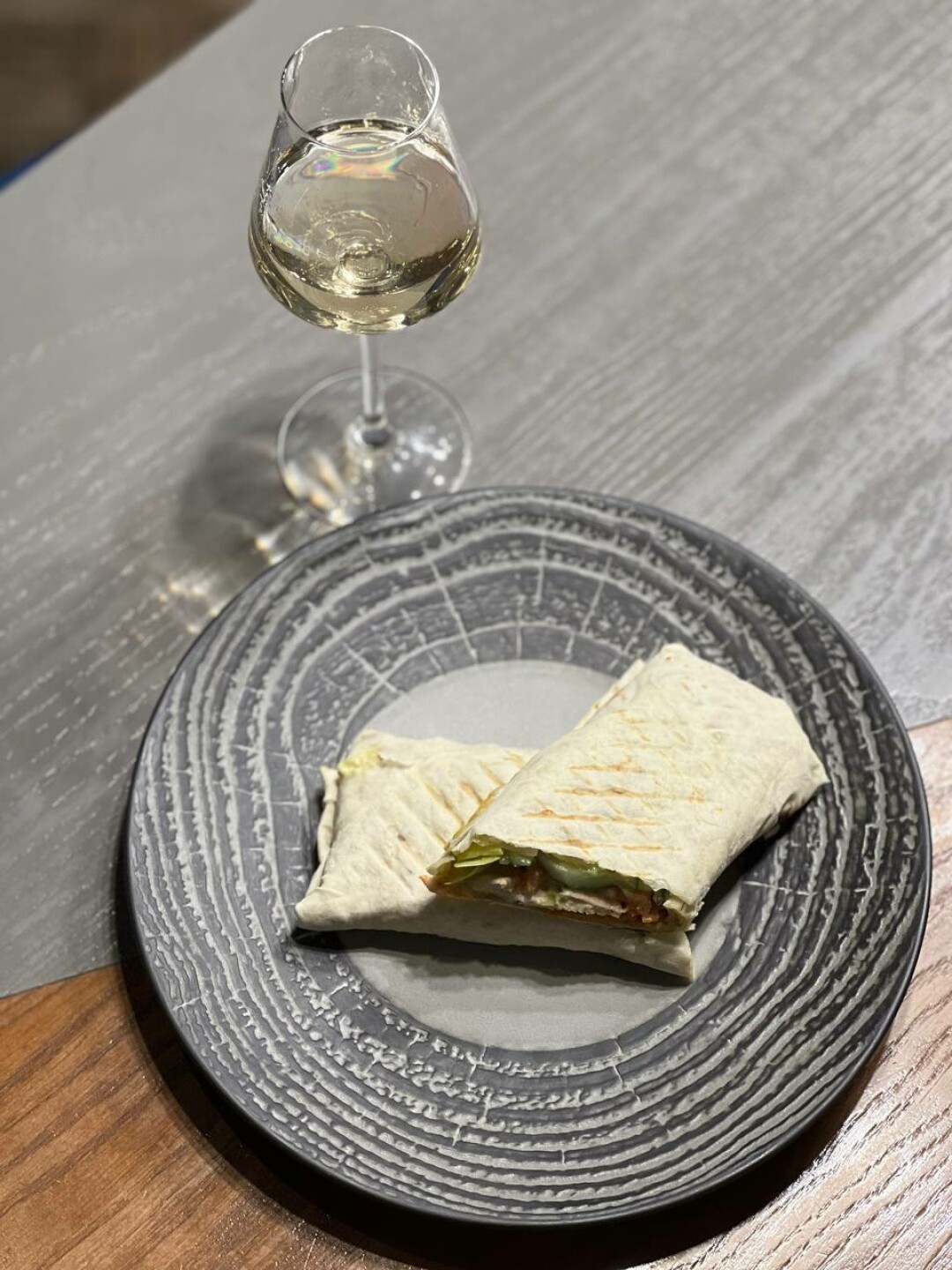 Теперь в кафе на ул. Ленина, 60 заглядываем не только за кофе, пастой и вкусными завтраками, но и за стритфудом. В меня ввели шаурму – состав классический: с курицей и овощами.