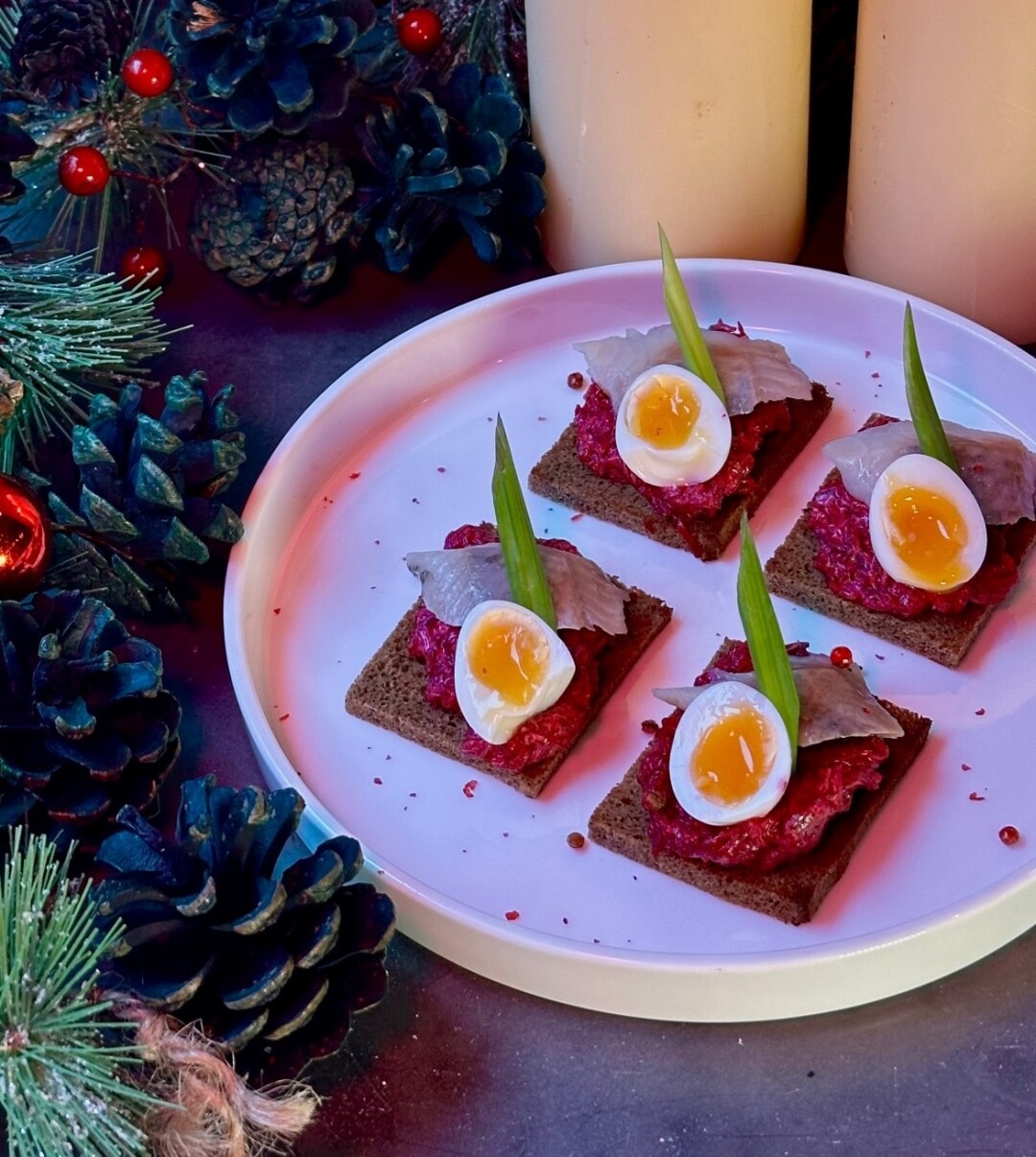 До конца года в гастробаре действует новогодний спешл. Здесь пробуем тапас с паштетом из шпрот или с сельдью со свеклой, блины с лососем и холодец с муссом из хрена и три новых коктейля.