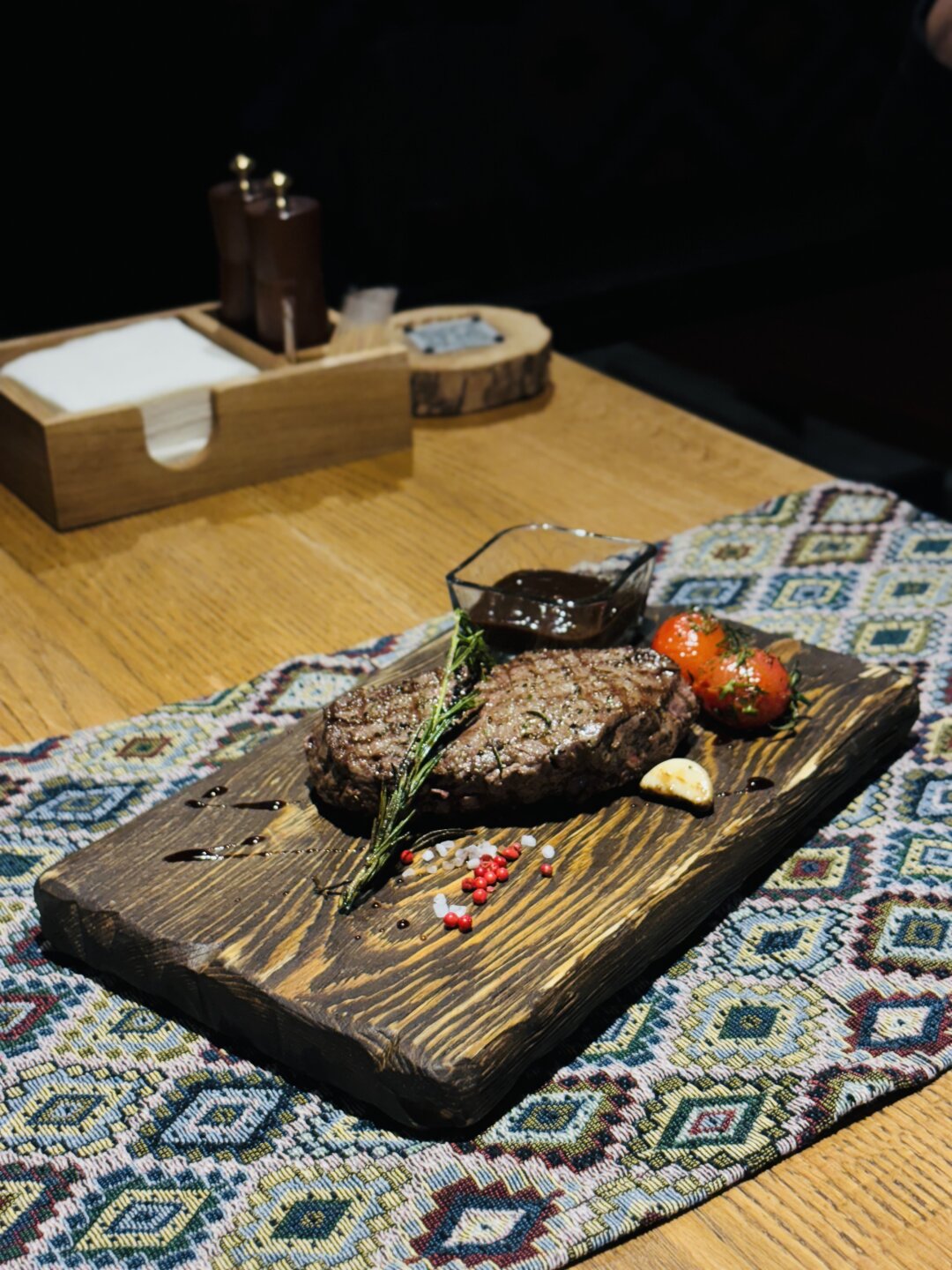- Рибай из конины с соусом из черноплодной рябины («Азык-Тулек»)
