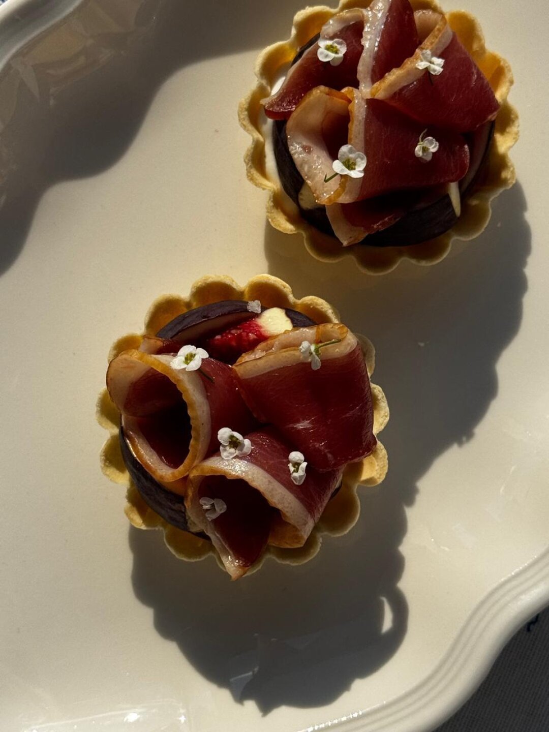 В ресторане запустили осеннее меню. Нашли здесь две позиции с инжиром: тарталетки с вяленой уткой и инжирный пирог с ванильным мороженом и пеканом.