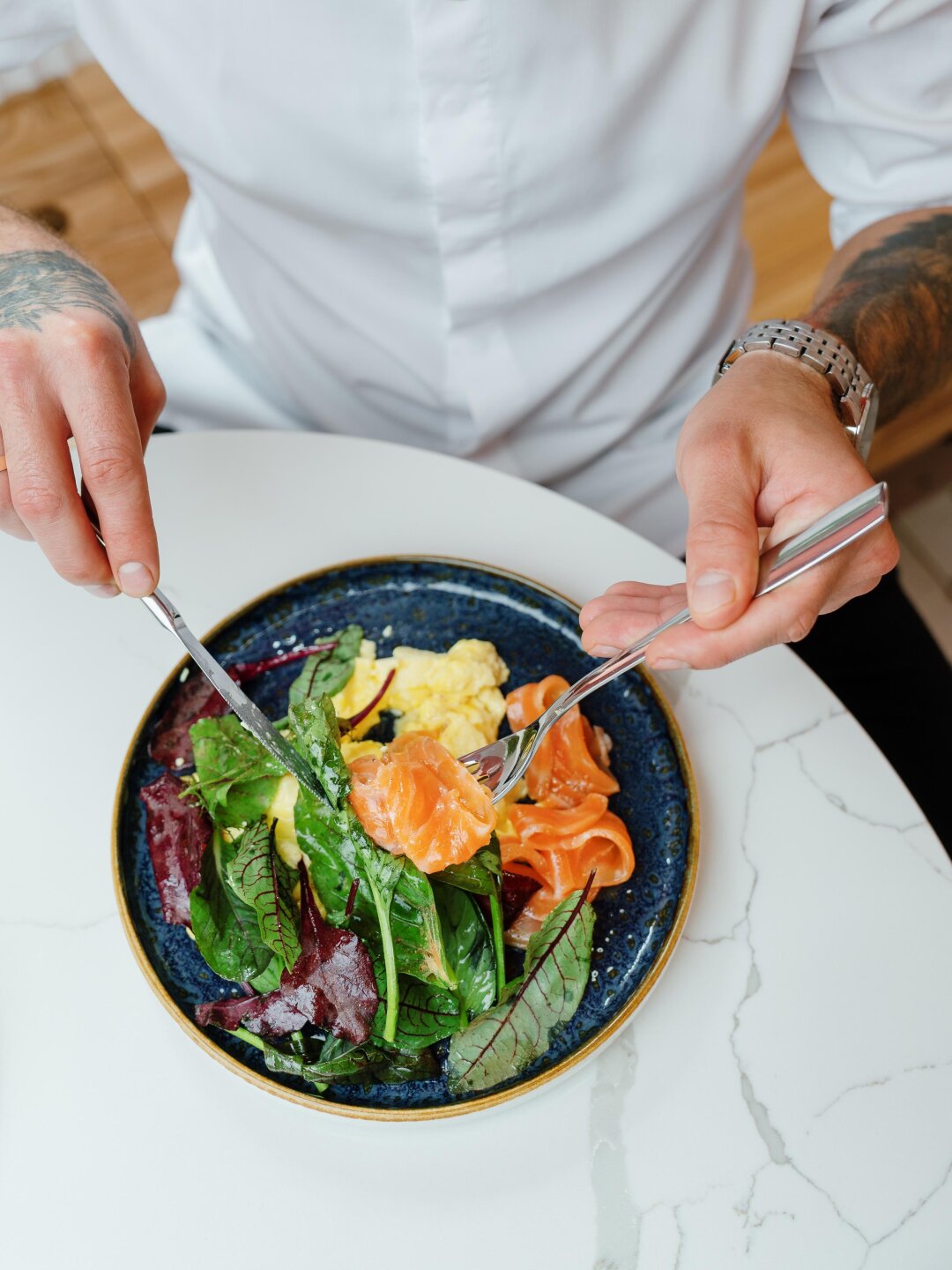 Завтрак с максимальным комфортом и панорамным видом – в бистро «Август». Подают их здесь с 9:00 до 16:00. В меню вы найдете яркие вкусы Италии: нежная лепешка с яйцом и котлетой из кролика, сэндвич «Август», драники с лососем и Бенедикт с лососем. Стоит попробовать завтрак «Август» или создать свой собственный «конструктор» из любимых ингредиентов. Не забудьте побаловать себя сладким: оладьями с клубникой, нежным ванильным пудингом или овсяной кашей с персиком. А еще на завтрак подают безлимитное игристое – и жизнь сразу становится лучше. Для тех, кто предпочитает здоровый образ жизни, то в меню найдете и чай, и кофе, и свежевыжатые фреши.