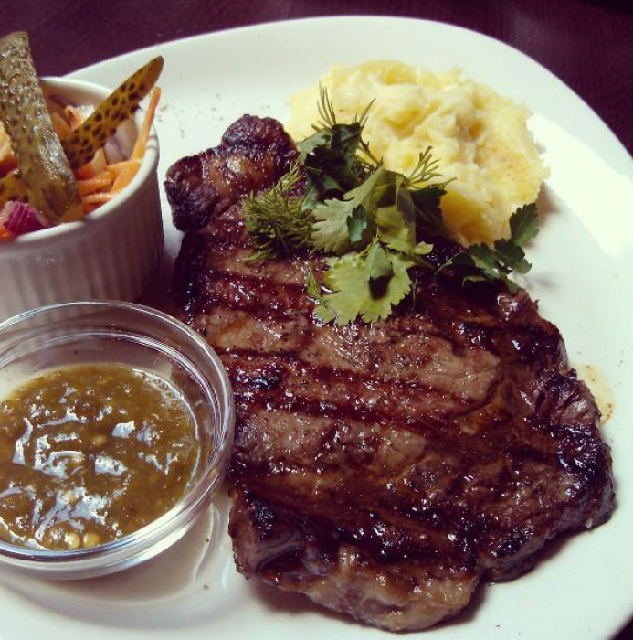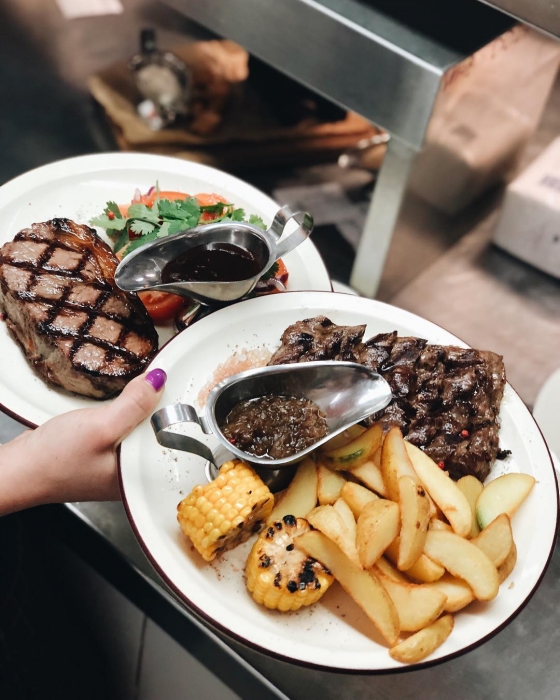 Это не просто ресторан, а полноценный стейк-хаус, способный удовлетворить потребности даже самого искушенного гурмана. Помимо семи видов стейков (от рибая на кости до томагавка из свинины) в меню есть салаты, гарниры, бургеры и многое другое.