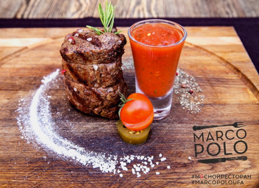 Со стейками все хорошо — пять видов на любой вкус. В Marco Polo используется необычный подход к порциям: если обычно цены прописываются в формате «100 г сырого мяса», то в данном случае порции фиксированные, а кое-где даже указано «не менее 400 г».