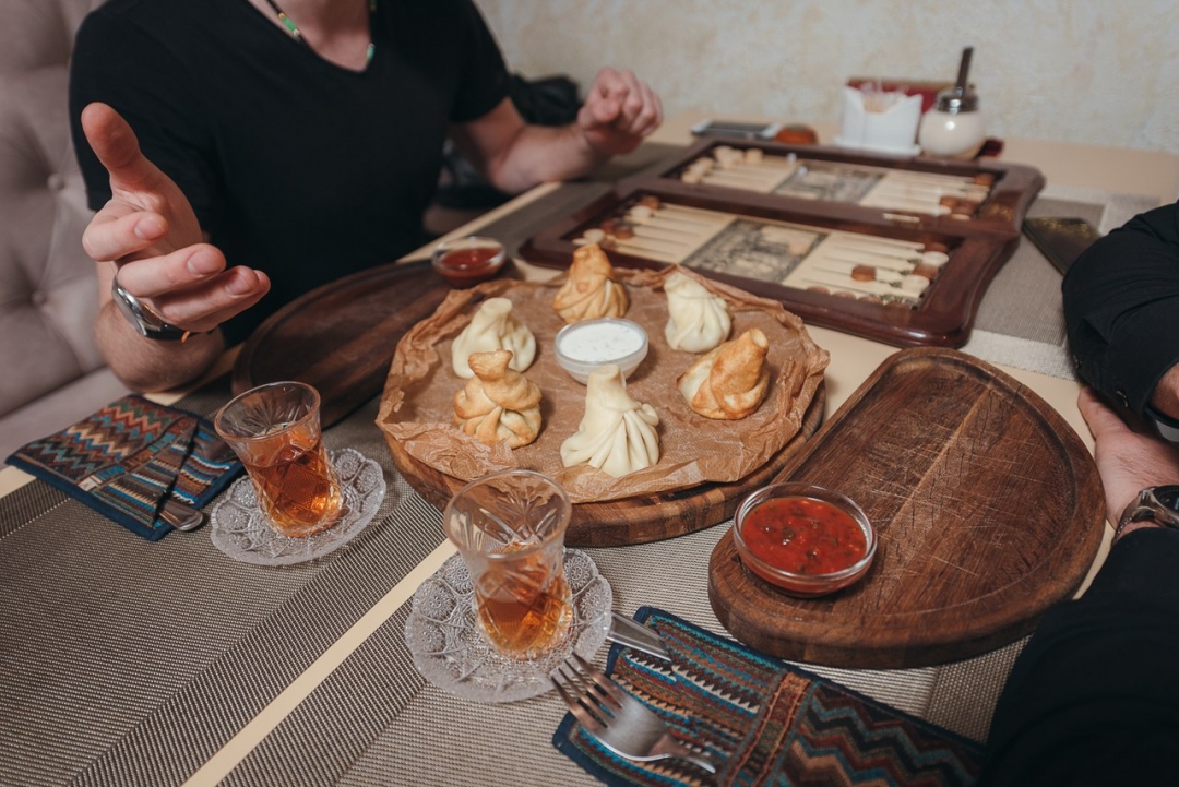 Кафе с блюдами традиционной грузинской кухни не может существовать без богатого ассортимента хинкали. На выбор здесь начинки из говядины, свинины или баранины. По желанию гостей повара могут поджарить хинкали или подать их вареными.