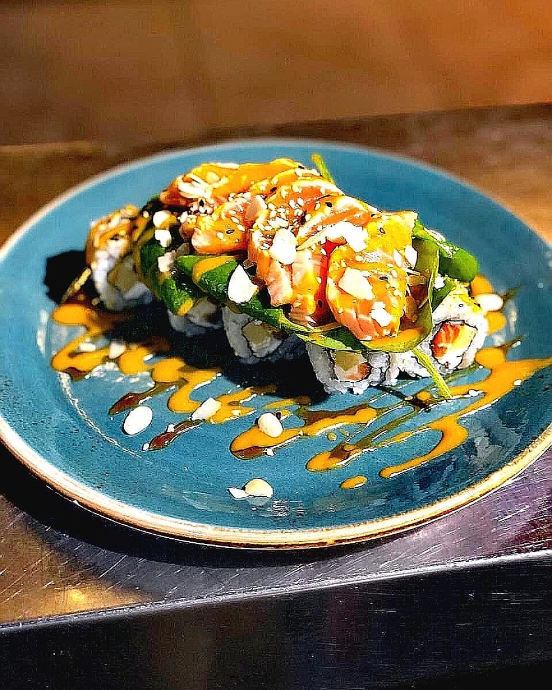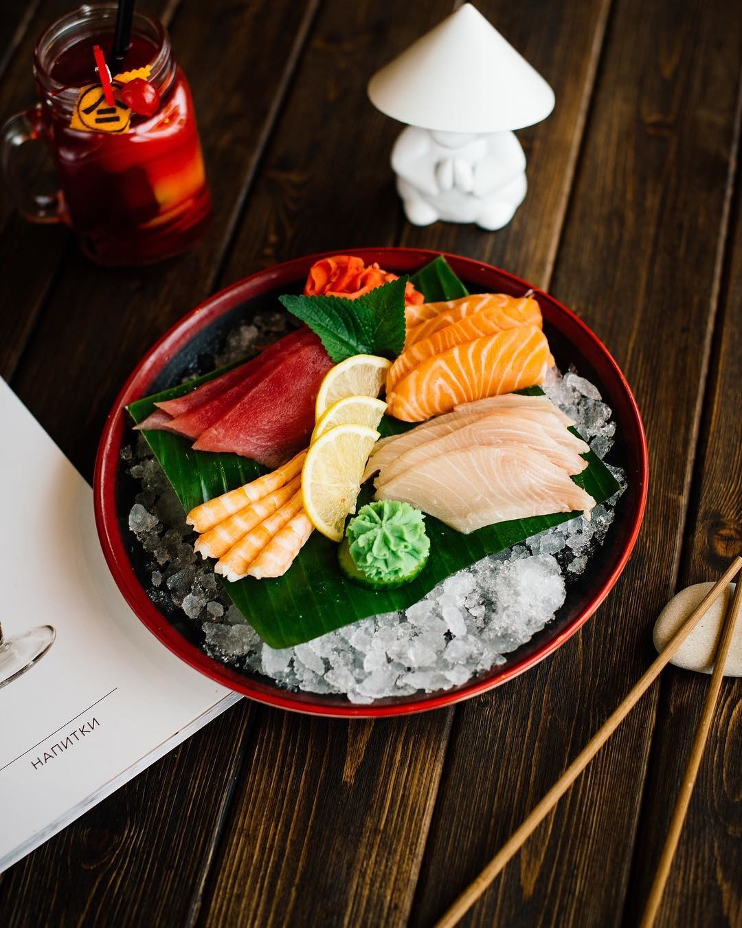 В еще одном ресторане японской кухни нашей подборки тоже есть роллы с рыбой, сашими, а еще здесь готовят рыбные стейки. Особо советуем попробовать филе лосося, обжаренное в соусе терияки. Рыба получается сладкой и очень мягкой. Стейк подается с миксом из сала и рисом с овощами. В меню есть и японские пельмени гедза, пропаренные в саке, с начинкой из лосося.