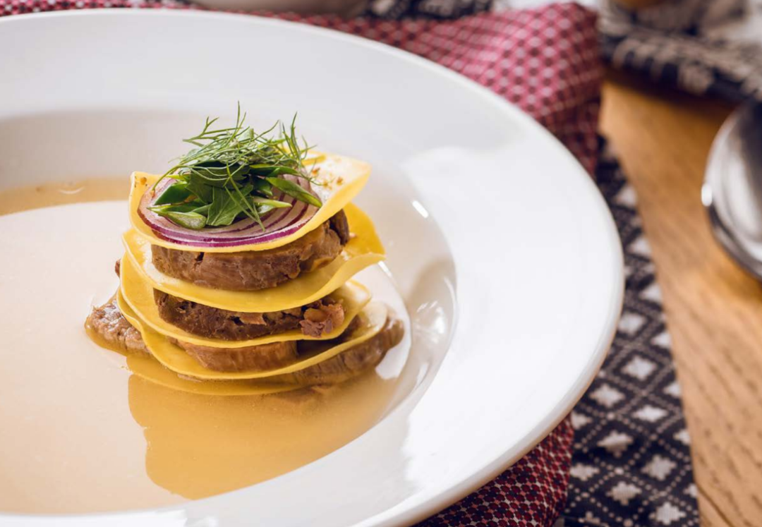 «Все дело в мясе», – решил шеф-повар ресторана и создал суп, в котором основную роль играет вовсе не бульон, а лапша и три вида мяса, горкой возвышающиеся на тарелке. Вероятно, жители башкири посчитают бешбармак обыденным супом, но туристы наверняка его оценят.