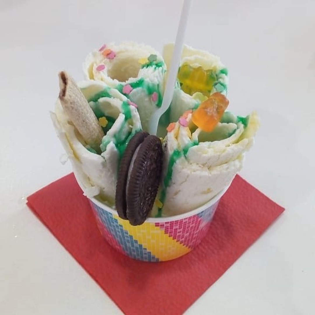 Десерт, на котором специализируется Shokko Shock, – это азиатское лакомство в виде мини-роллов. Рецепт приготовления такого мороженого весьма оригинален: на ледяную доску выкладывают ингредиенты (молочный состав, фрукты и различные сладкие добавки по желанию), повар дробит ингредиенты, перемешивает их и получившуюся смесь зажаривает тонким слоем, сворачивая затем в роллы. Получившийся десерт заливают топпингом, украшают посыпкой или шоколадными палочками, подают в стаканчиках с фруктами и муссами. Цена: 200 рублей.