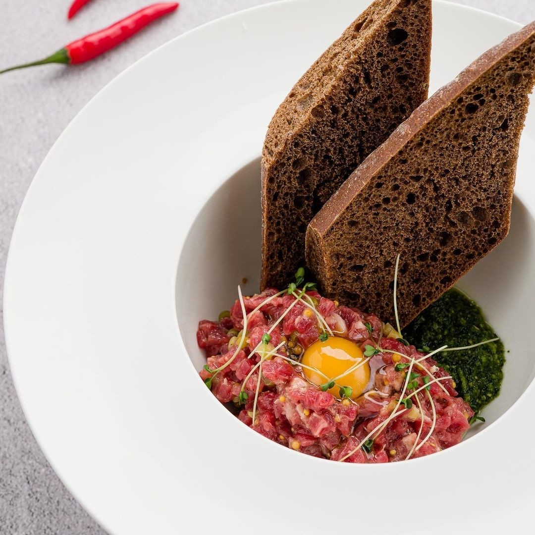 Разработкой блюд занимался бренд-шеф Рамиль Фархуллин. В основе нового меню – средиземноморская, традиционная русская и местная кухня, стейки, блюда из хоспера, множество овощей и их сочетаний. Также нас успокоили тем, что вегетарианские наборы из старого доброго меню «Буржуйки» останутся в наличии: чуть позже их включат в раздел «дополнительно».