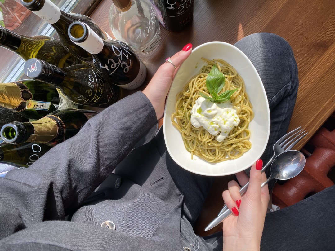 В кафе-баре продолжают обновлять меню, и теперь к новинкам добавились бриошь с мороженым и вишневым вареньем, драники с соусом из лисичек и беконом, греча с соусом из лисичек и пармезаном, суп-пюре из брокколи с креветками и страчателлой, страчателла с томатами и песто, паста с песто и страчателлой, а также брускетта с томатами и песто. В меню их для наглядности вынесли на отдельную открытку.