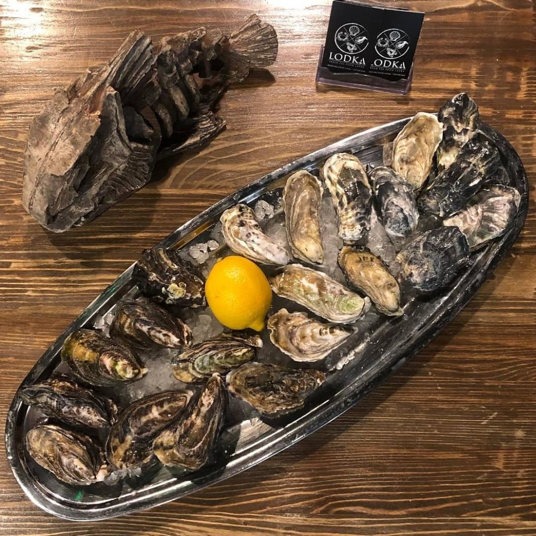 В рыбном ресторане солидный улов! Нежные новозеландские фермерские устрицы «Черный жемчуг», «Голубой жемчуг» и «Розовая Джоли» из Намибии отдают по 450 рублей за штуку. В заведение также стоит отправиться, если вы еще не пробовали ирландские устрицы «Тиа Мара», которые выращивают в экологически чистых условиях Атлантического океана. Мясистые, сладковатые и в меру маслянистые, для снижения солености они больше двух месяцев аффинируются – то есть облагораживаются – в пресных клерах Маренн-Олерон во Франции.