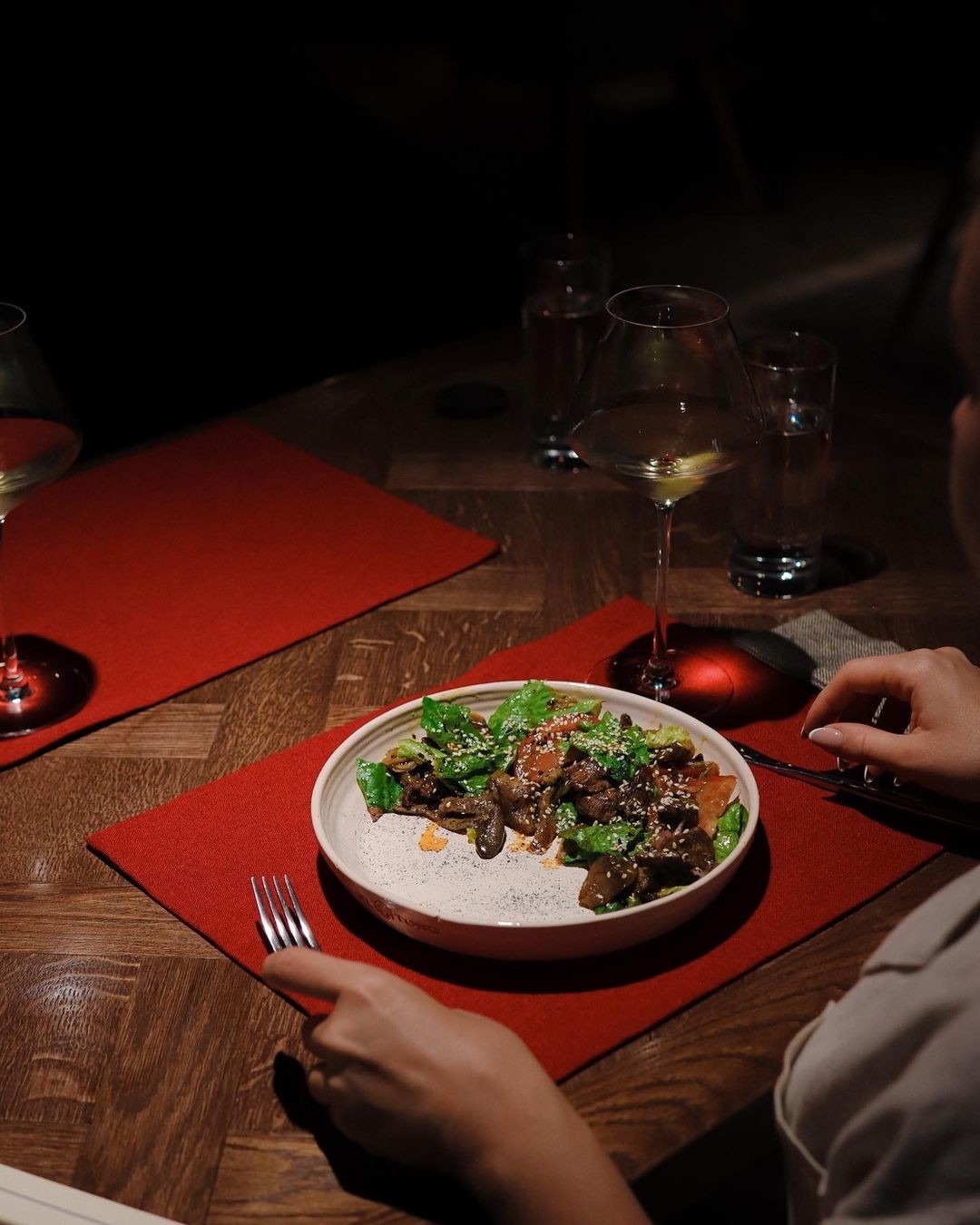 В ресторане обновили обеды: на этой неделе отправляемся дегустировать салат со спайси курицей и ананасом, чихиртму, окрошку с говядиной, жюльен с грибами и цыпленком, лингвини арабьяту с мидиями и томленую говядину с грибами. При заказе двух блюд напиток – капучино, американо, чай или клюквенный морс – подадут бесплатно.