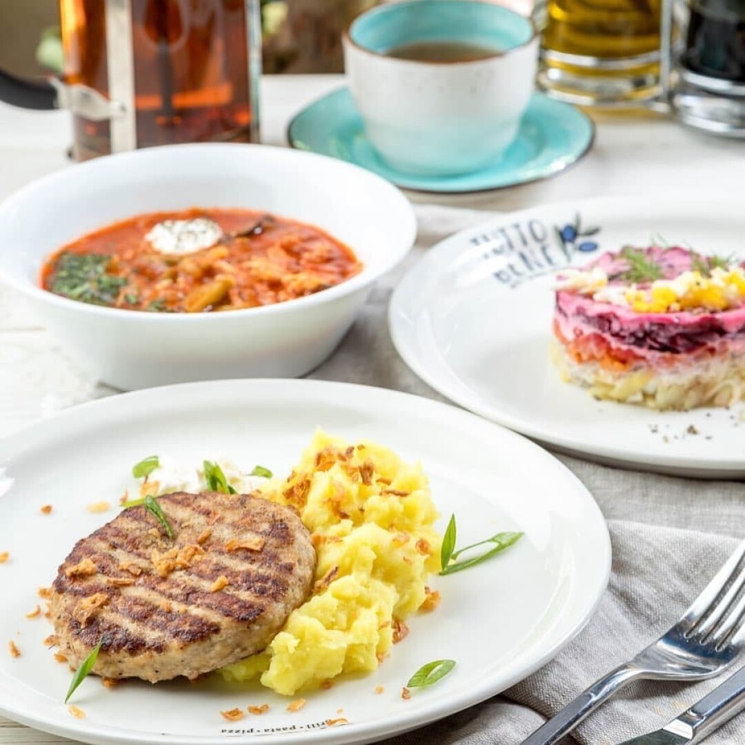 Команда ресторана представила три новогодних сета, которые можно заказать с доставкой куда удобно. Цена – от 2300 до 6100 рублей. Так, например, в самый большой набор готовых блюд входит ассорти шашлыков, запеченный картофель, ягодный морс, пхали из свеклы и шпината, жареные баклажаны, хачапури по-мегрельски, хачапури нарта, хинкали с мясом, цыпленком и сулугуни.