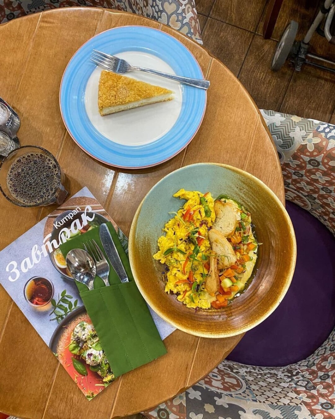 В рамках этого специального предложения можно попробовать новые блюда, которых нет в основном меню. Например, ячневую кашу с яблочным джемом или скрэмбл с куриным филе в соусе Sweet chilli. На десерт советуем заказать бриошь со сливочно-ванильным кремом.