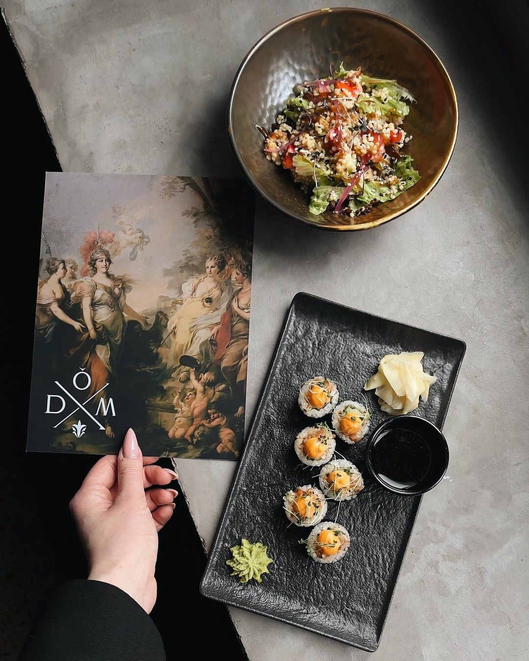 В ресторане обновили список блюд. Салат с фермерским лососем и авокадо, вяленая утка с личи, утка конфи с печеной сливой: несмотря на то, что комбинация «плотное+легкое» закрывает все вкусовые потребности, десерта не избежать.