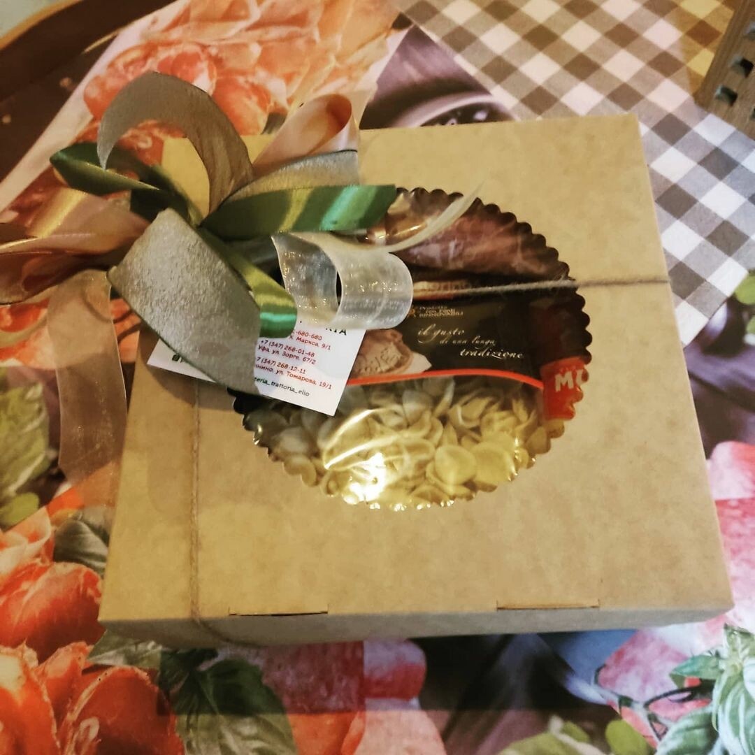 Владелец пиццерии-траттории Элио Каппиелло слышит своих гостей. И вот вам доказательство. По просьбы некой Дарьи команда Elio сделала варианты подарочных наборов продуктов Made in Italy. В бокс вошли ингредиенты, пользующиеся особой популярностью среди уфимцев: прошутто крудо, итальянская колбаса, брезаола, итальянское пиво, паста, печенье кантуччи и многое другое. Подарочную коробку можно собрать на любую сумму, забрать самому из заведения или отправить по почте.