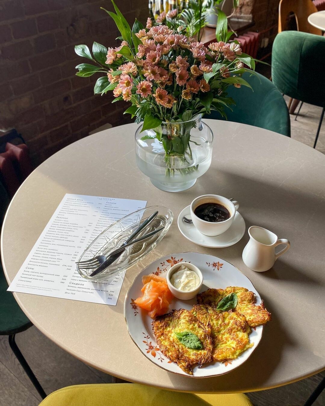 С необычного завтрака начинается день, полный приятных неожиданностей. В обновленном меню теперь скрамбл с лососем, приправленный хрустящим сулугуни и салатом из авокадо, а также лососевые драники, творог с медом и орехами, немецкие, арабские и греческие сеты. Подают их ежедневно до 14.00.