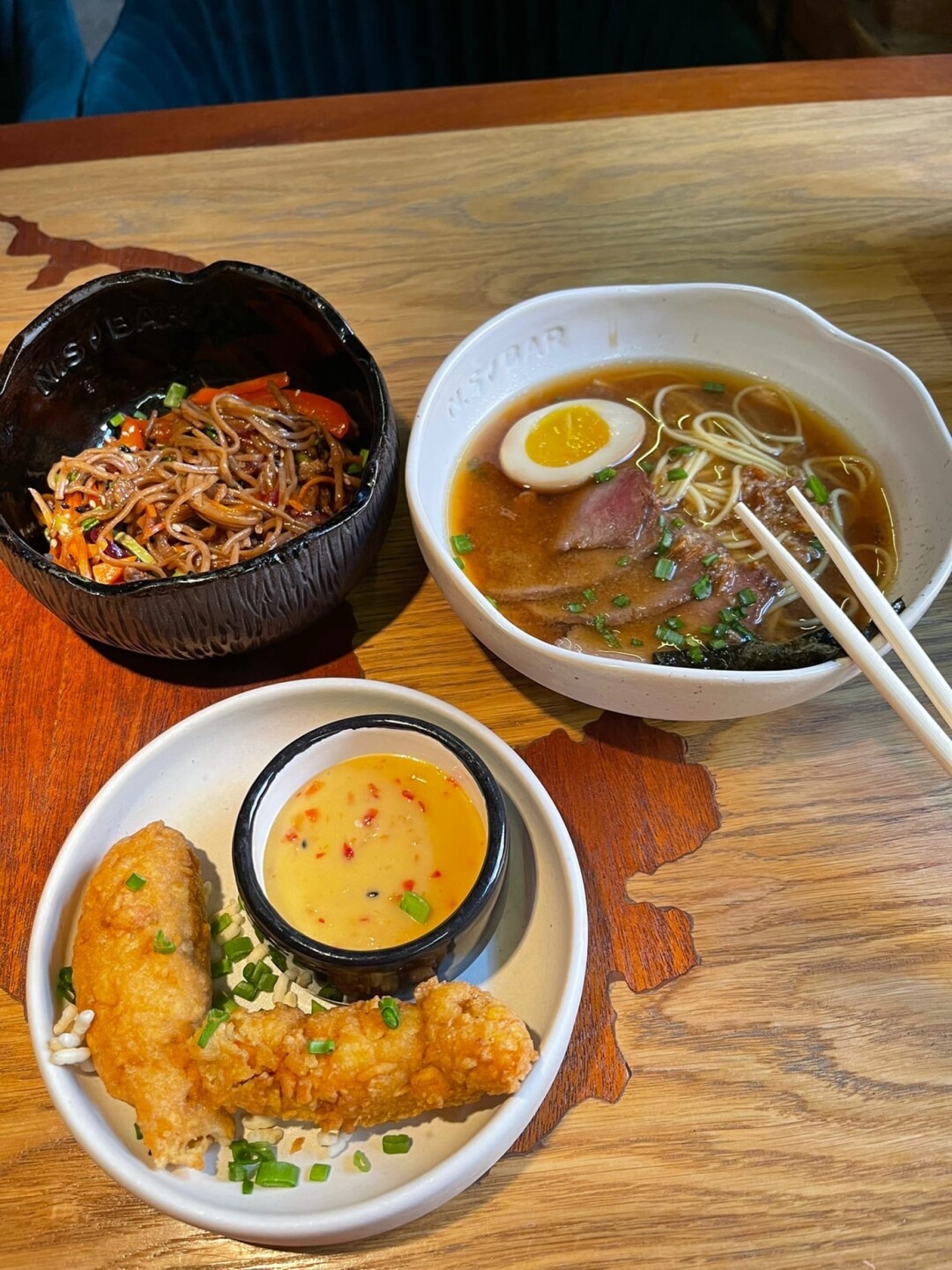Попсы в духе филадельфии и мисо не будет: вас ждет сет из четырех блюд. Креветки темпура, вок с говядиной, рамен с ростбифом и моти на десерт предлагается запивать специально подобранными коктейлями и вином. 1690 рублей за все удовольствие. Предложение действует весь день, но на вечер столик лучше бронировать заранее.