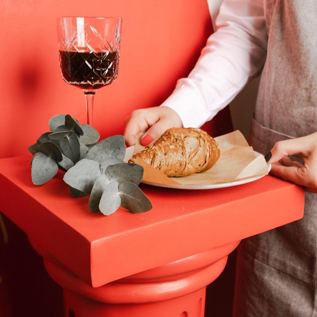 Ставка на цвет сделана в названии, концепции и интерьере заведения: красный расположился на логотипе посуде, и стенах кофейни.