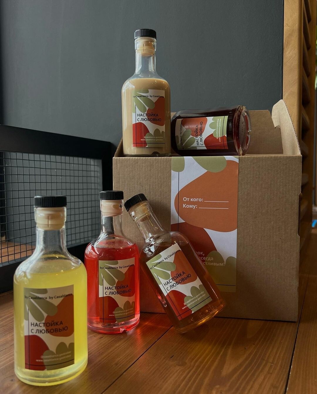 Сет настоек из любимого бара – лучший подарок. Такой точно не передарят и не уберут на дальнюю полку шкафа: проверено! Выбрать наполнение можно самостоятельно. Бокс из пяти бутылок стоит 3900 рублей, из девяти – 5900 рублей.