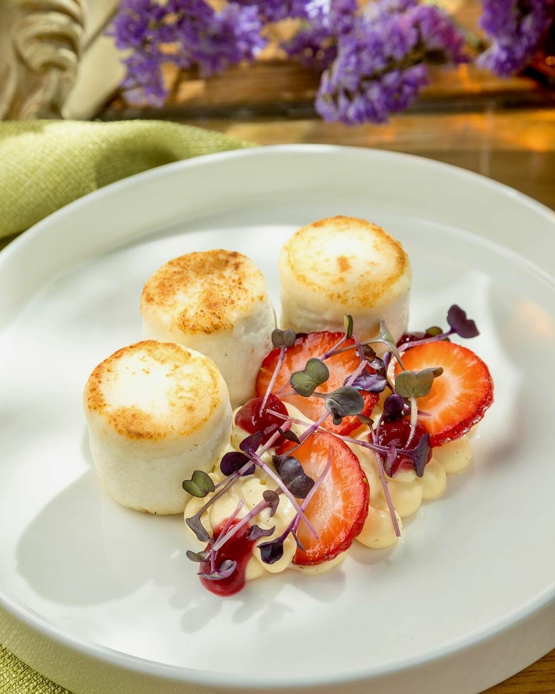 Теперь в ресторане можно заказать на завтрак сырники с малиновым соусом, творожную запеканку, мини оладьи, омлет с креветками, тосты, драники с лососем или питу с пастрами.