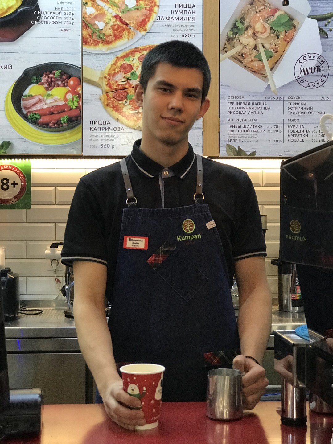 Никто не понимает, чем он зарабатывает на жизнь. Он приветлив с нами, заказывает немного – в основном, кофе. Документирует все моменты своей жизни. Может резко вскочить и начать снимать себя посреди зала. Приходит на все тусовки, бизнес-завтраки, дегустации. Всегда рад попасть под хорошее настроение Михаила (Михаил Кумпан, основатель сети Kumpan Cafe – рим. ред.), ведь они кофейные друзья.
