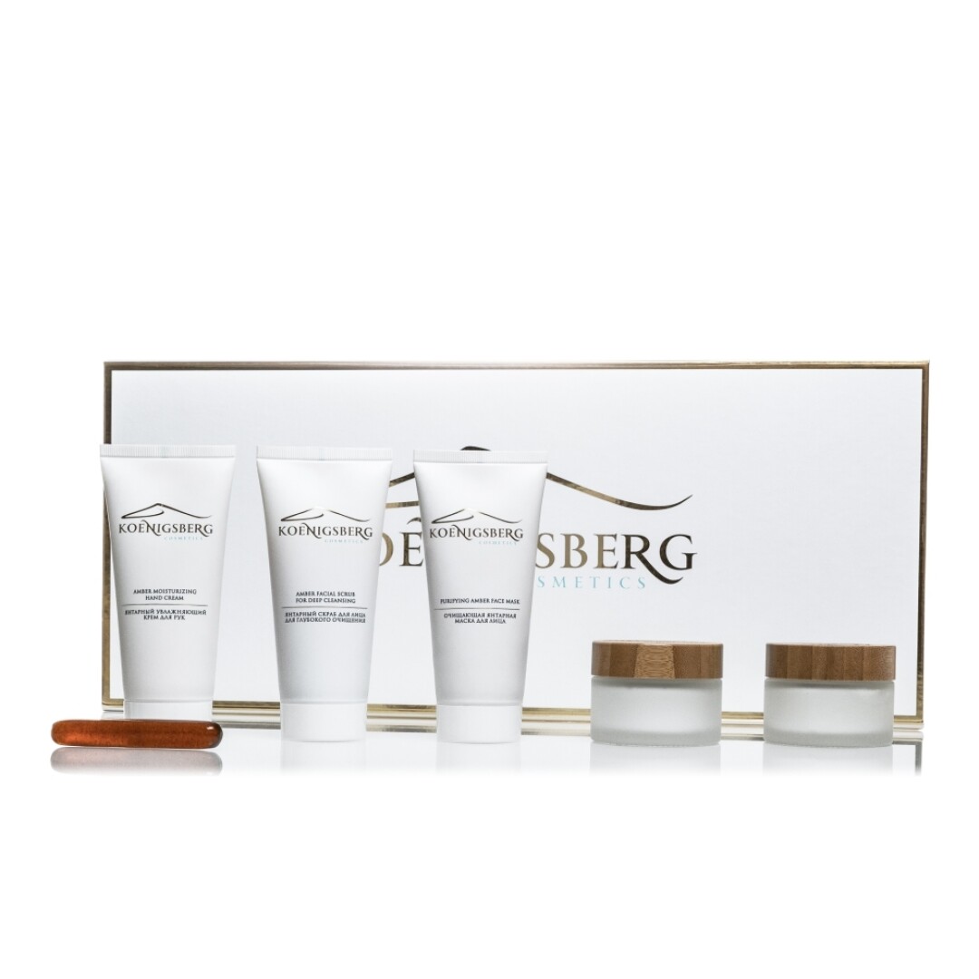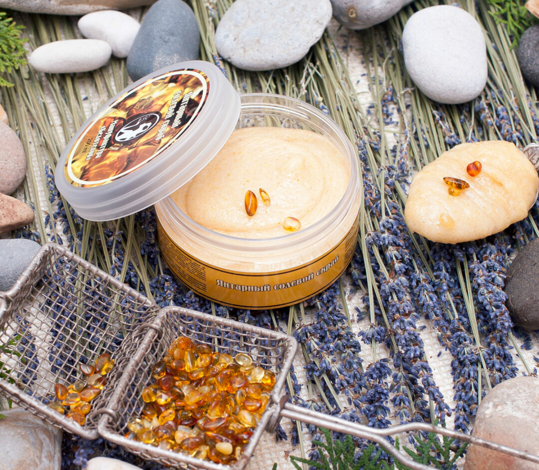 Янтарь и его производные используют Koenigsberg Cosmetics и Мануфактура «Белотелов». Мелкомолекулярные структуры янтарной кислоты и пудры активно воздействуют на эпидермис, отшелушивают ороговевший слой кожи, повышают ее защитные свойства и улучшают тургор тканей.