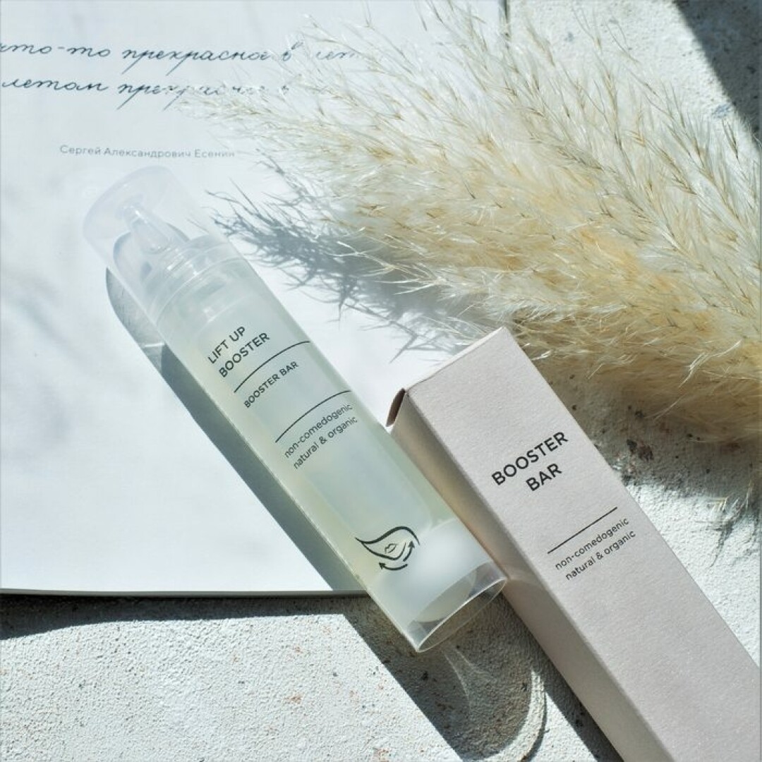 Инновационные формулы без воды использует бренд Booster Bar. Вместо нее в составах средств бренда содержатся гидрат липы, черной смородины, камелии, цветочная вода лаванды, алоэ вера, муцин улитки и экстракт центеллы азиатской.