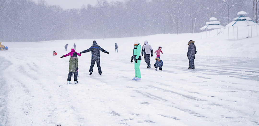 Бюджетный вариант для активного зимнего дня. За символическую плату вы получаете доступ ко льду, теплой раздевалке и прокату. Если захочется больше активности, можно отправиться на расположенную поблизости тюбинговую трассу.