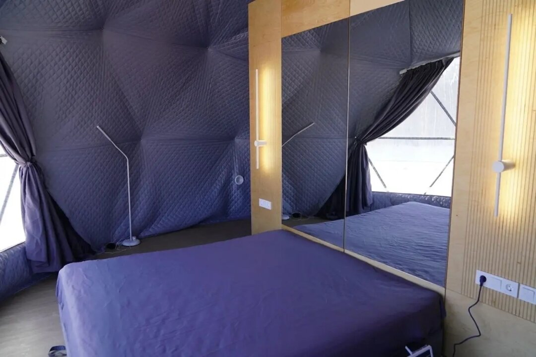 Он уже включает 10 жилых модулей, панорамный ресторан и общежития для персонала. В дальнейшем планируют увеличить возможности приема гостей, а также построить кинотеатр, офисные корпуса и банный комплекс.