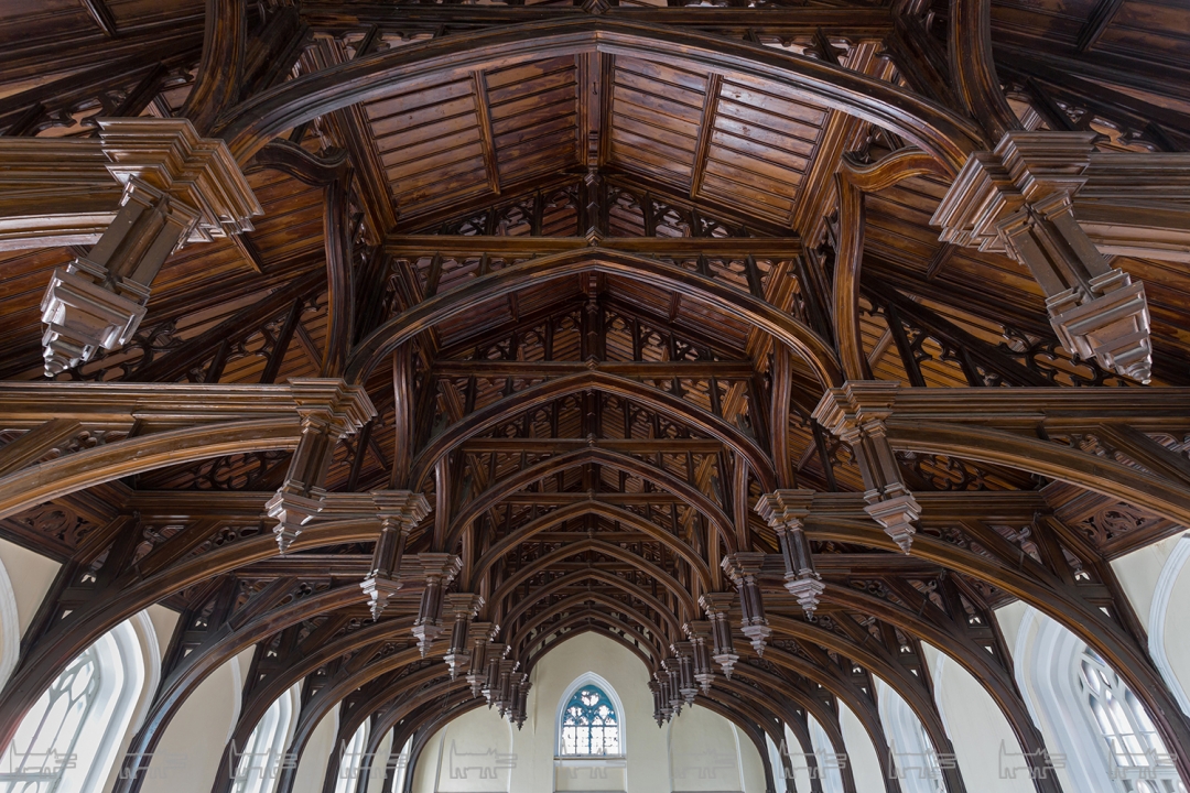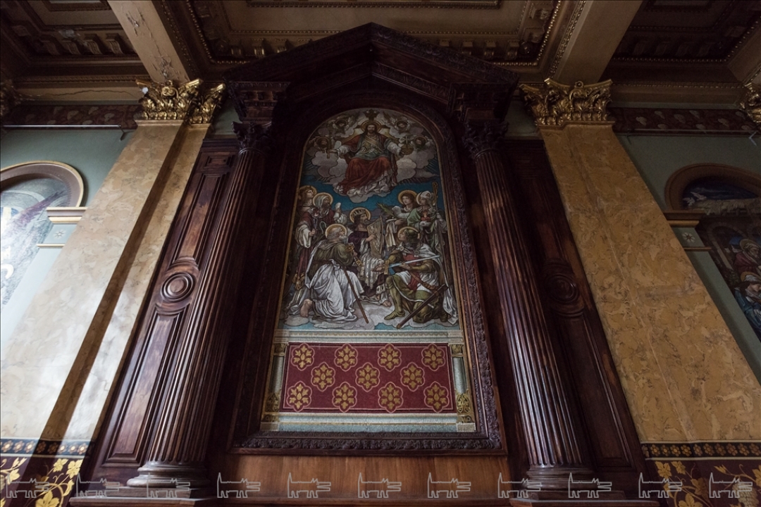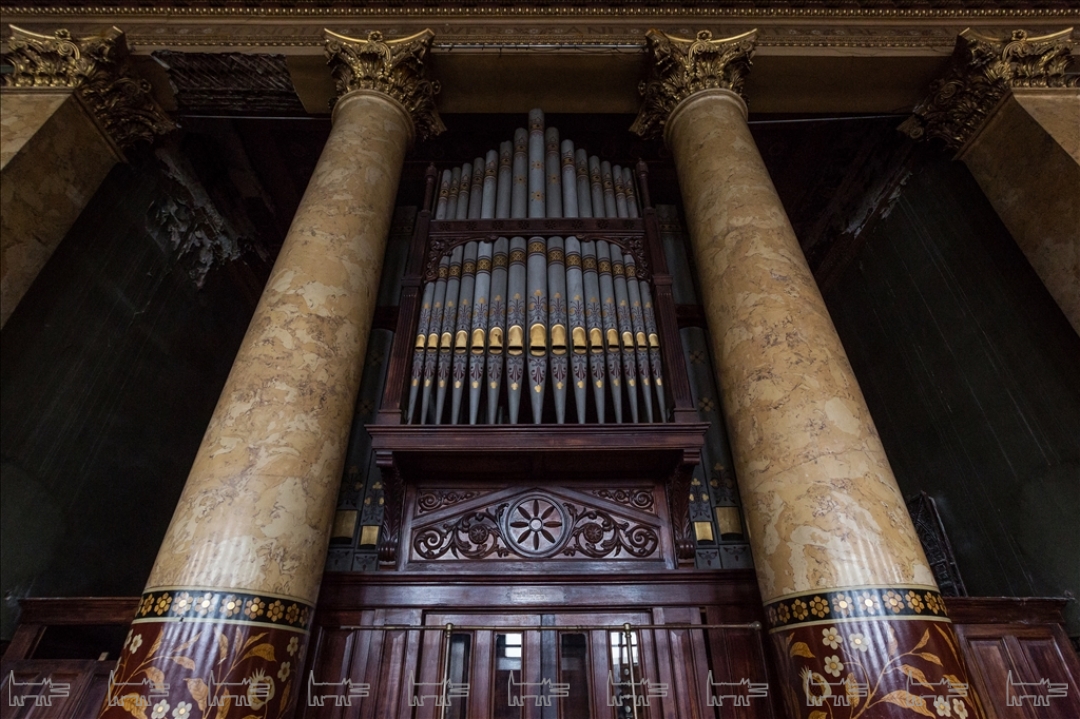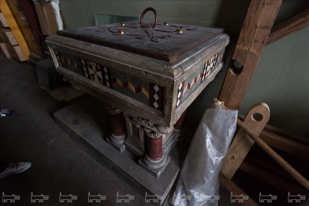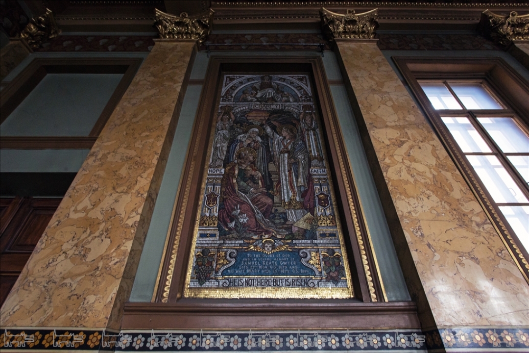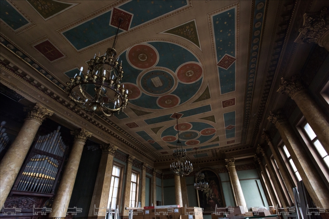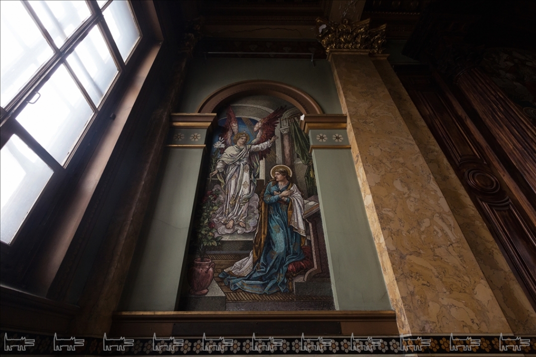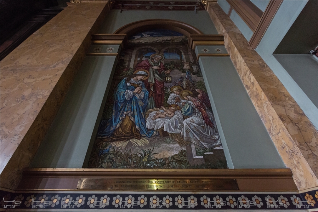 Англиканская церковь Иисуса Христа была основана на этом месте экспатами-британцами еще в 1723 году, в начале XIX века перестроена Джакомо Кваренги в стиле классицизма, а в 1860-е помещение было отделано по проекту Александра Пеля. Церковный зал по периметру украшен колоннами и пилястрами из искусственного мрамора, флоральная живопись у их основания демонстрирует все изобилие английского сада. В окна были вмонтированы живописные витражи с ростовыми изображениями святых, в советское время они были демонтированы, но, к счастью, стен здания не покинули. Центром композиции является трехчастный алтарь из красного дерева, в который в конце XIX века были помещены, три смальтовые мозаики специально заказанные из Англии. На противоположной алтарю стороне висит соразмерная копия картины Питера Пауля Рубенса «Снятие с креста». В церкви также сохранился орган с расписными трубами, в простенке с которым складирована оригинальная церковная утварь.