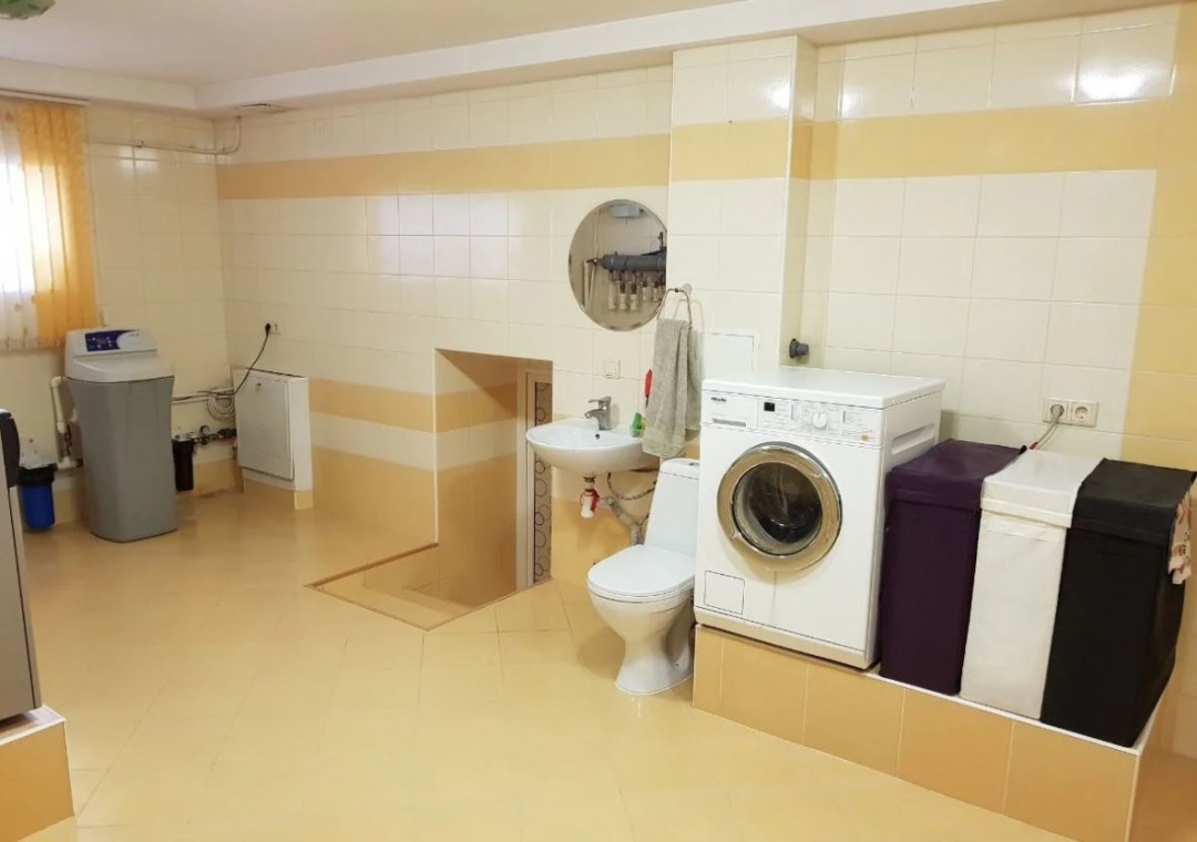 На цокольном этаже оборудованы баня, сауна, тренажерный зал, бильярдная. Плюс на приусадебной территории есть мангал, тандыр, красивая терраса с обеденной зоной.