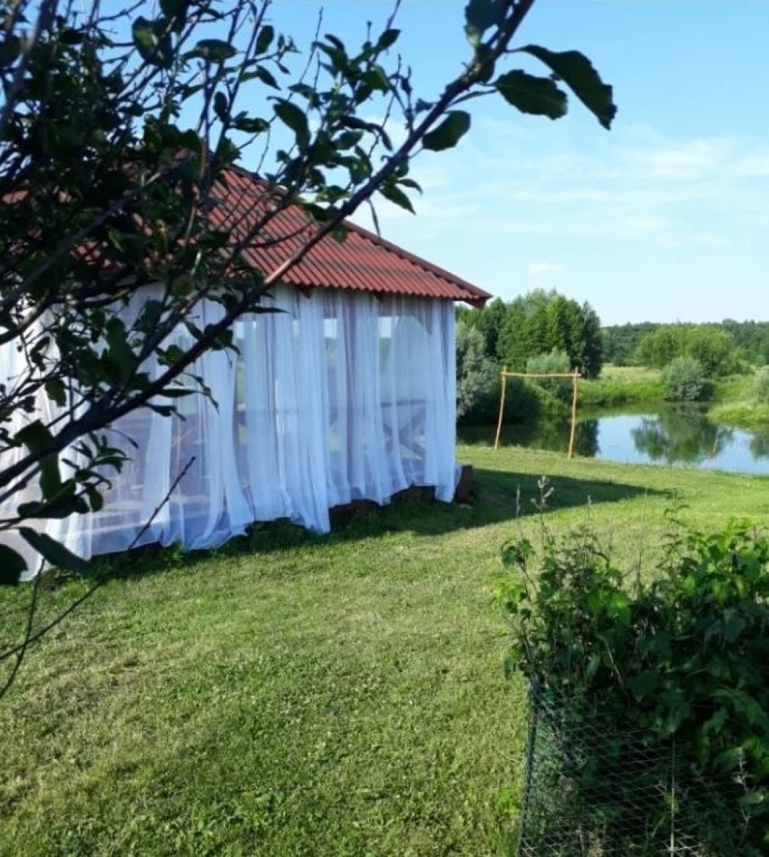 Коттеджный комплекс обычно сдается под мероприятия, но сейчас в один из домов (маленький – тот, что на берегу) готовы заселить жильцов на длительный срок. Дом находится прямо на берегу озера. Здесь можно кататься на велосипедах, ловить рыбу (говорят, здесь как-то поймали щуку весом 7,5 кг), играть в бильярд, жарить шашлыки, париться в баньке, а потом сразу прыгать в озеро. На территории предусмотрена парковка, и везде ловит Wi-Fi.