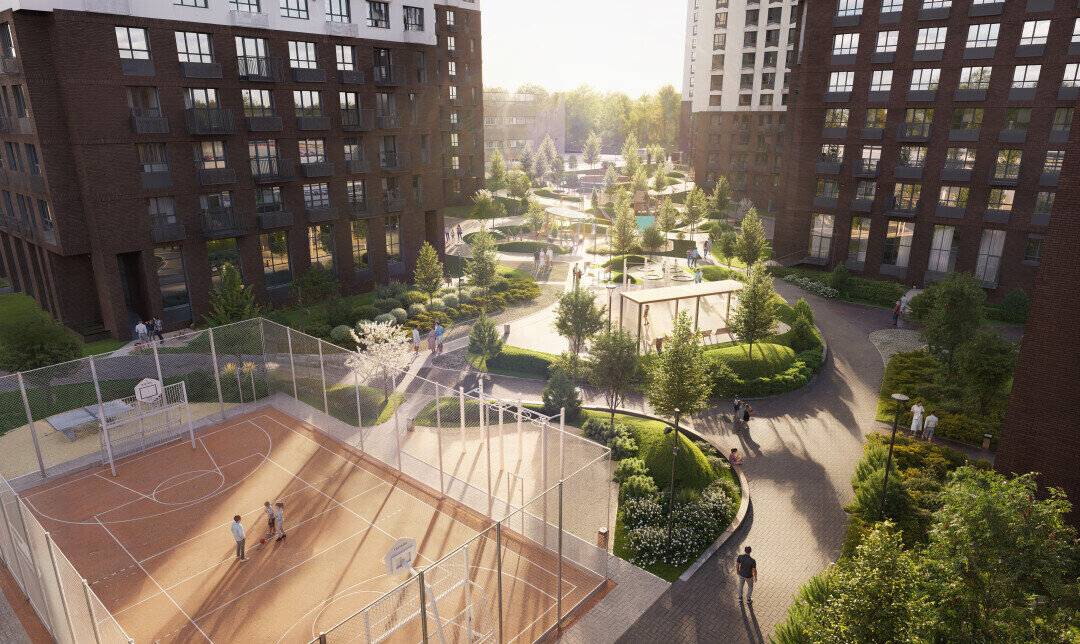 Второй плюс – это благоустройство: в закрытом дворе предусмотрены песочница, карусель, качели, гибкие элементы для лазания и игровые комплексы для детей разных возрастов. Подолгу вывозить из квартиры, спускать на лифте и выкатывать велосипеды и самокаты не придется: дети даже без помощи взрослых смогут брать их из помещения для малогабаритного транспорта на первом этаже.