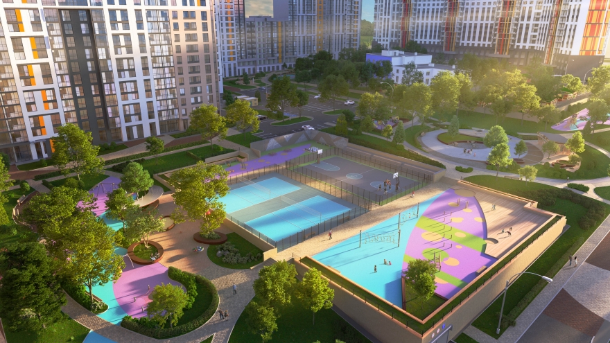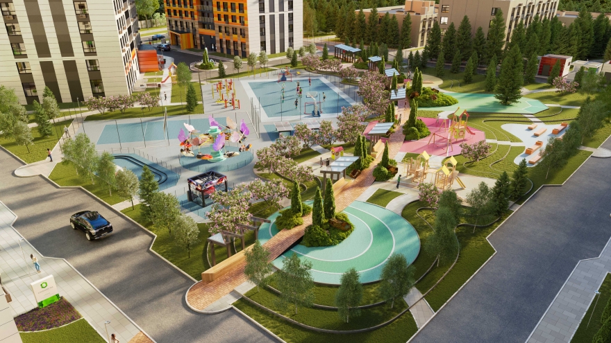 План строительства комплекса подразумевает удобную сетку улиц, которая органично вписана в окружающий ландшафт. Одни дома не нависают над другими, а каждый двор является личной территорией его жильцов, закрытой от шума, суеты и машин. Каждый квартал огорожен по периметру, имеет несколько въездов с ограниченным доступом. Во дворах нет парковочных мест (достаточное количество предусмотрено с внешней стороны домов), зато есть удобная и веселая игровая площадка, зона тренажеров для воркаута на свежем воздухе, и специальная зона отдыха для семейного отдыха с барбекю. Для активных жильцов в комплексе будет возведена современная спортивная площадка с бесплатными тренажерами, которая позволит оставаться здоровыми и активными, даже не посещая фитнес-клубы или спортивные секции.