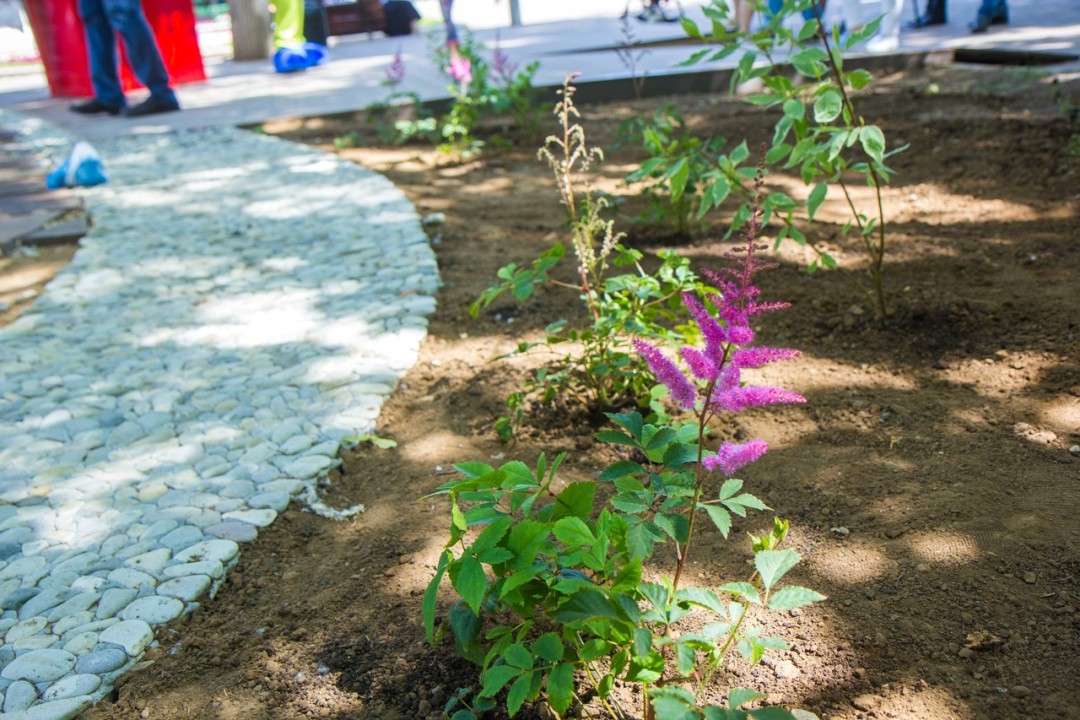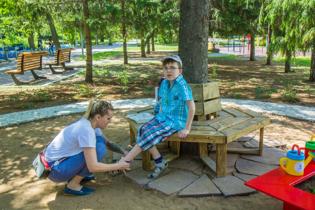 Нужна разная помощь. Земляные и бетонные работы, чтобы сделать тактильную дорожку. Установить перголы, но прежде их разукрасить. Цветы для сенсорных клумб посадить. Работы предстоит много.