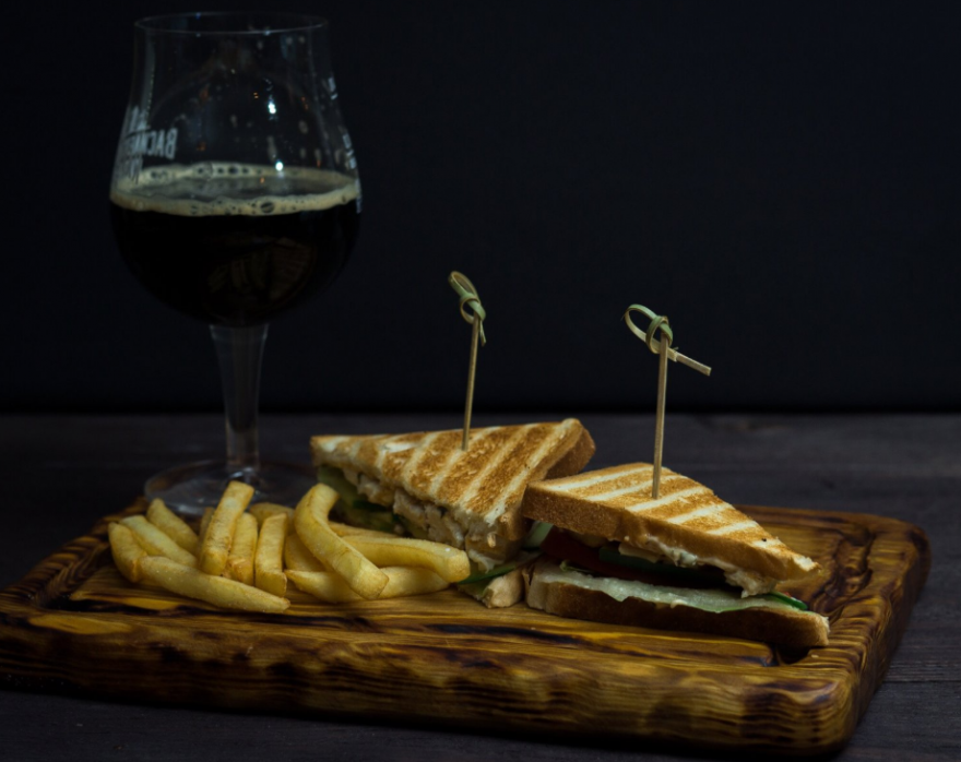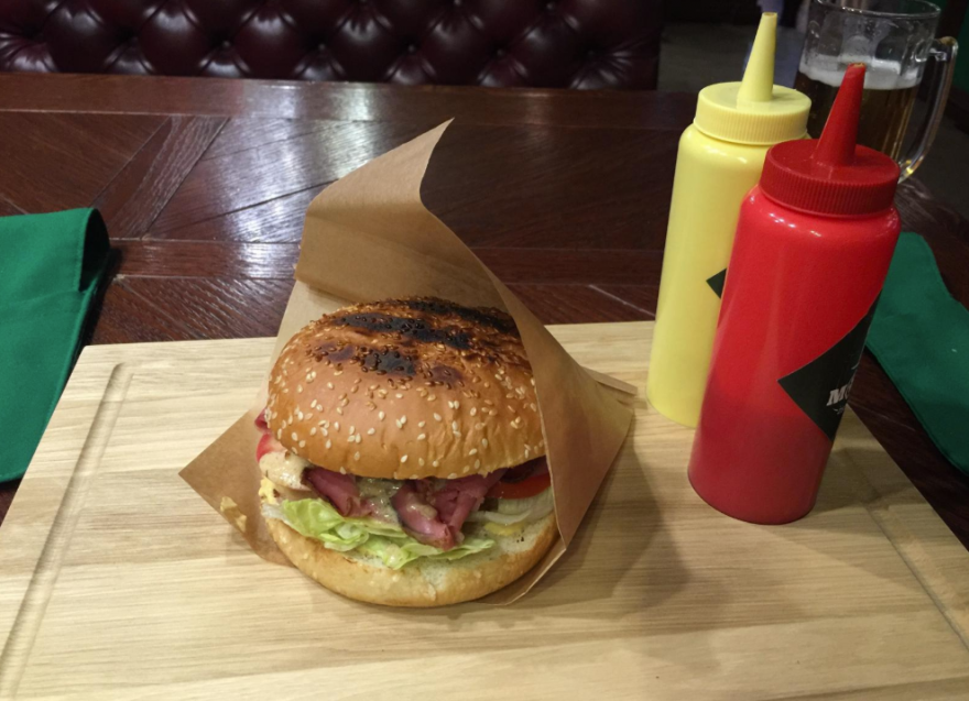 В меню - бургеры(с говядиной, со свининой, с курицей), колбасками, сэндвичами и горячими закусками. И разумеется, никуда без трансляции футбола!