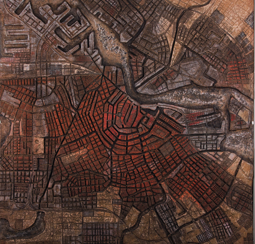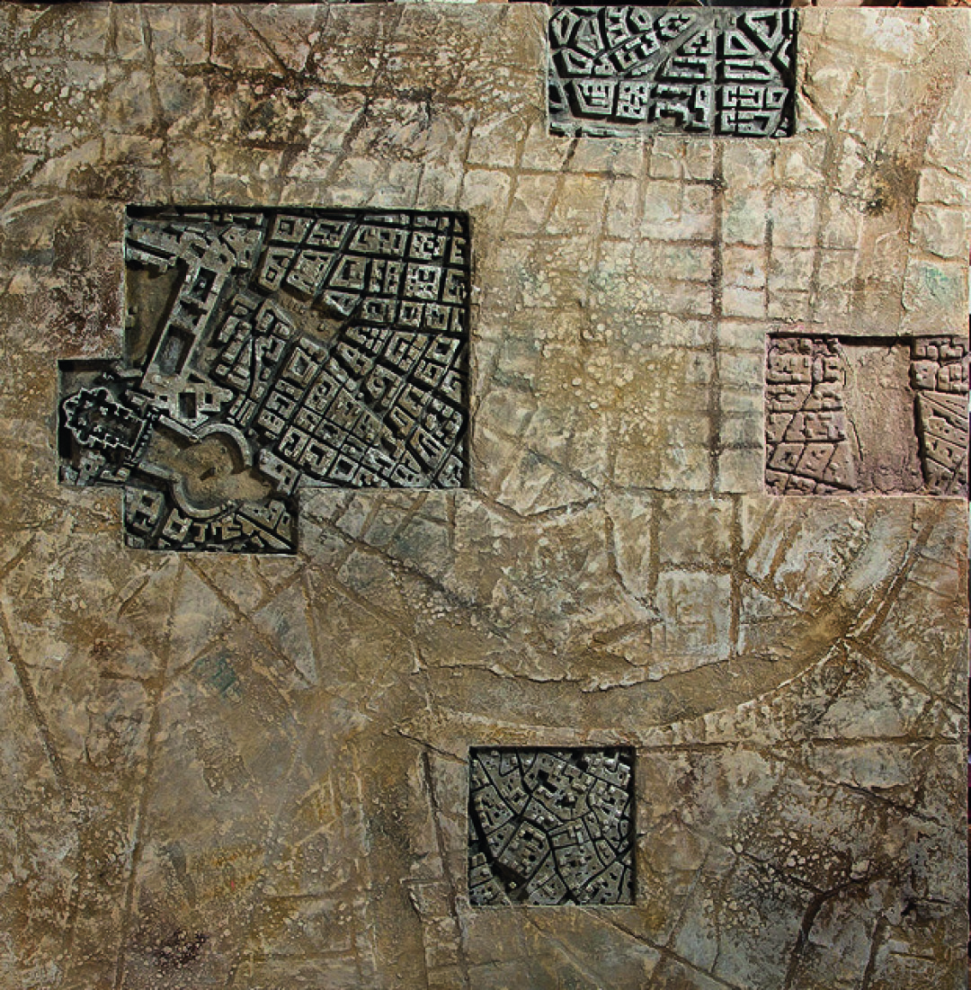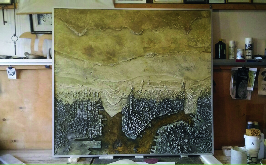 Художник Ринат Миннебаев создает объемные картины, вдохновляясь городской топографией и размышляя о будущем человечества на Земле.